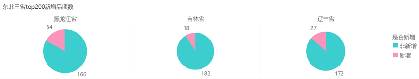 本期新增品项黑龙江省最高,新增34个品项,辽宁其次27个品项,吉林18个品项 更新比例分别17%,13.5%,9%。