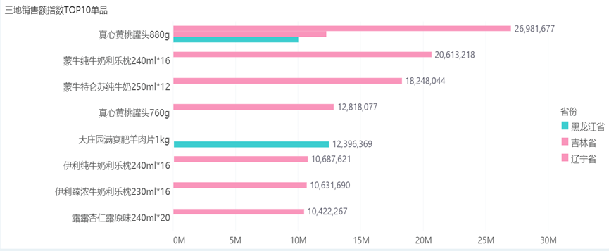 三地销售指数TOP10单品: