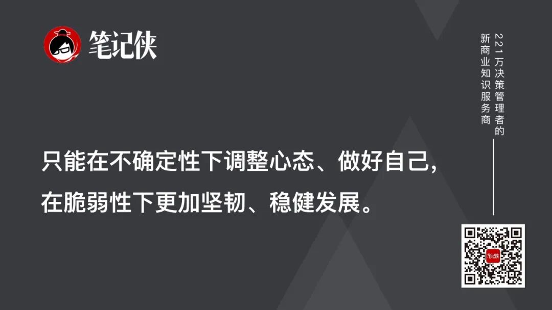 今天做企业确实面临的压力很大,也不可能回到以前了,只能在不确定性下调整心态、做好自己,在脆弱性下更加坚韧、稳健发展。