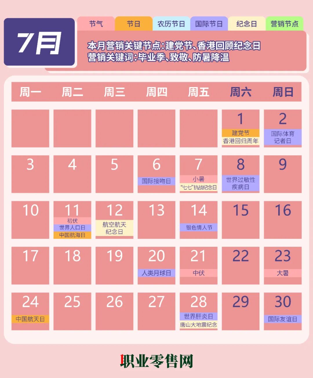本月营销关键节点:建党节、香港回顾纪念日 营销关键词:毕业季、致敬、防暑降温