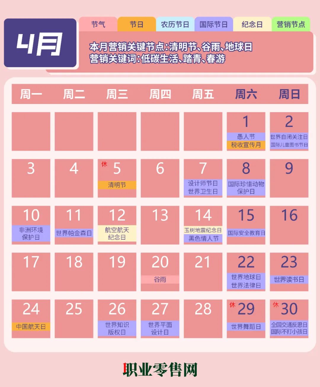 本月营销关键节点:清明节、谷雨、地球日 营销关键词:低碳生活、踏青、春游
