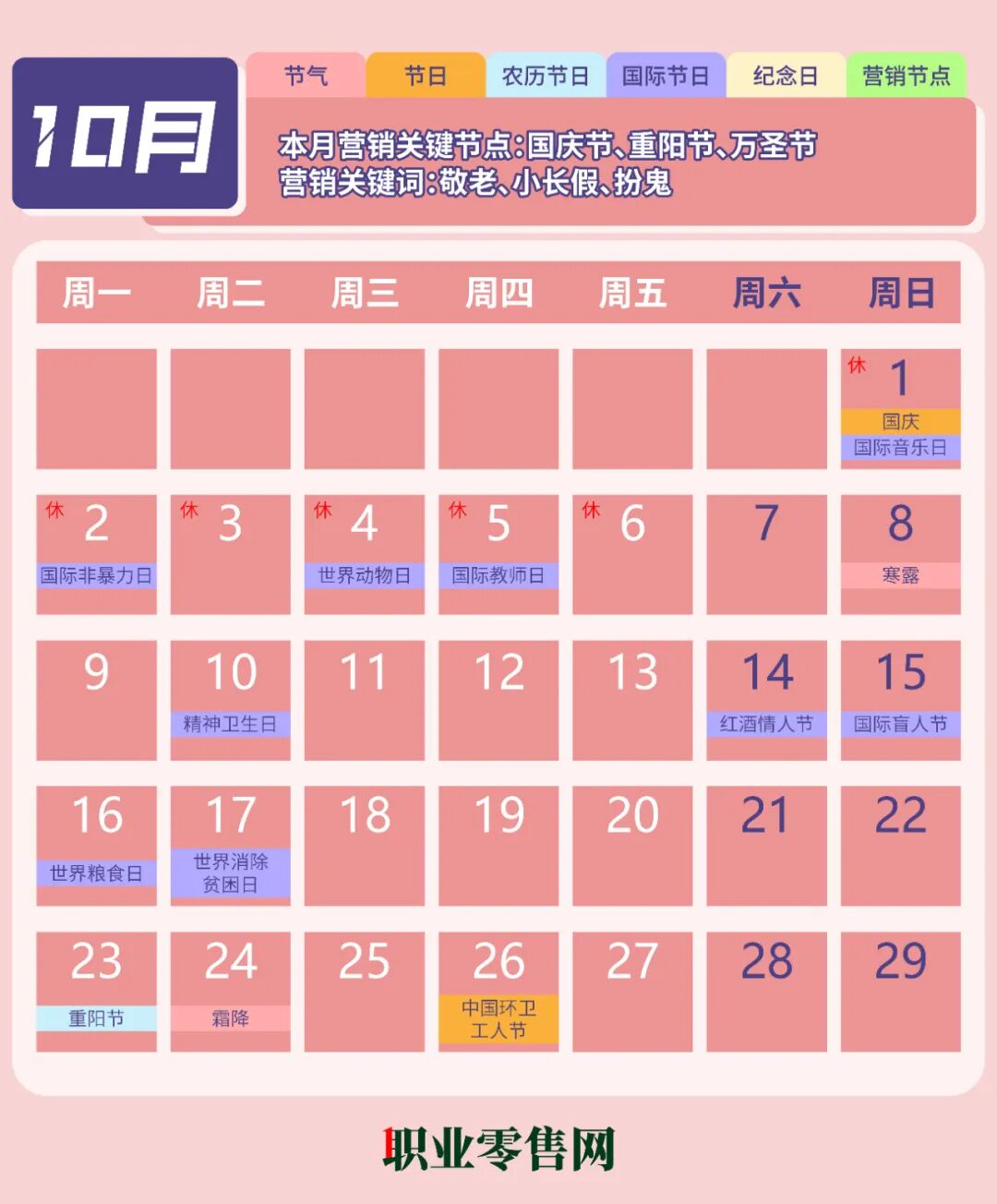 本月营销关键节点:国庆节、重阳节、万圣节 营销关键词:敬老、小长假、扮鬼