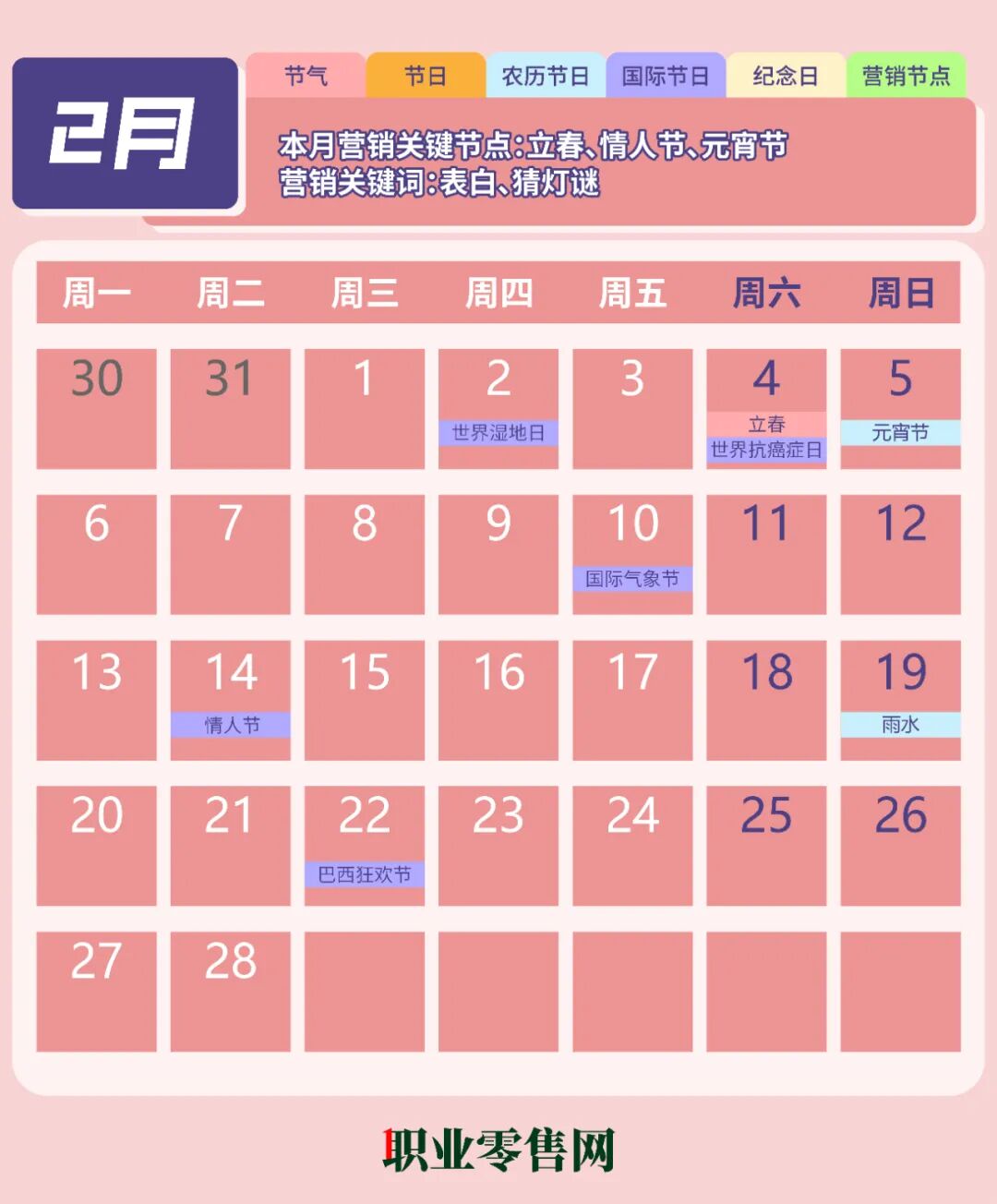 本文来源 | 职业零售网导读:2023全年营销热点日历,可收藏! 即将告别2022年,迎接2023年。在新的一年里,除了我们常见