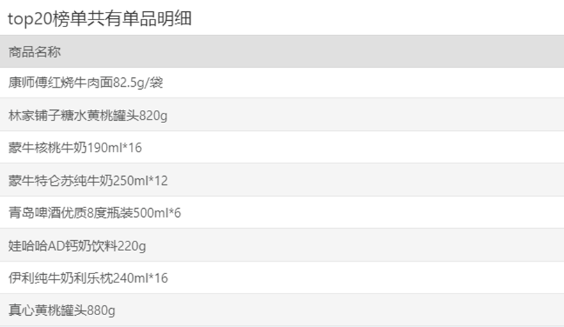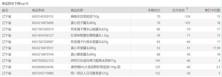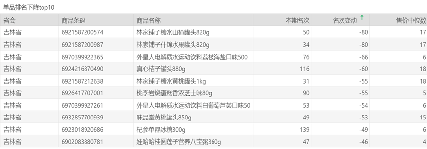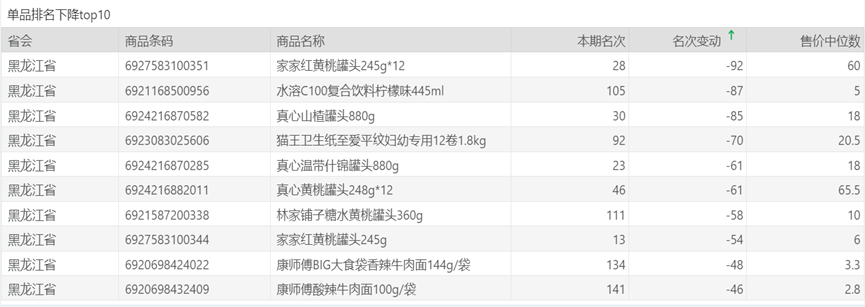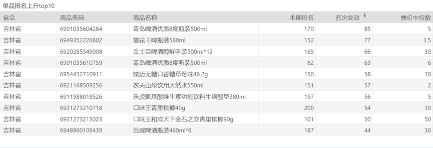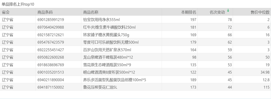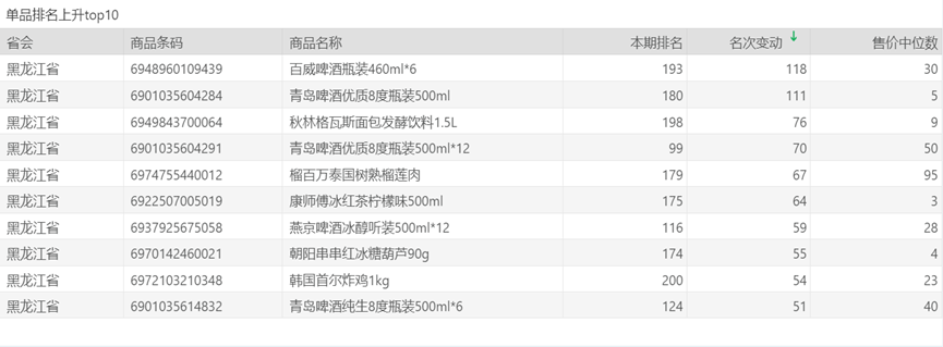 | 排名 | 名次变动 | 商品条码 | 商品名称 |