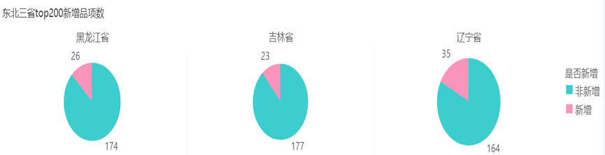 本期新增品项辽宁省最高,新增35个品项,黑龙江其次26个品项,吉林23个品项 更新比例分别17.5%,13%,11.5%。