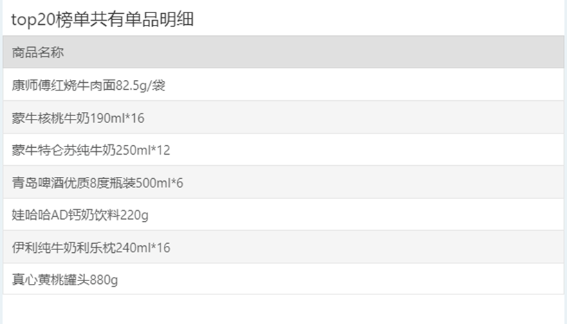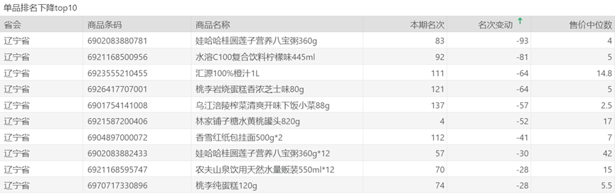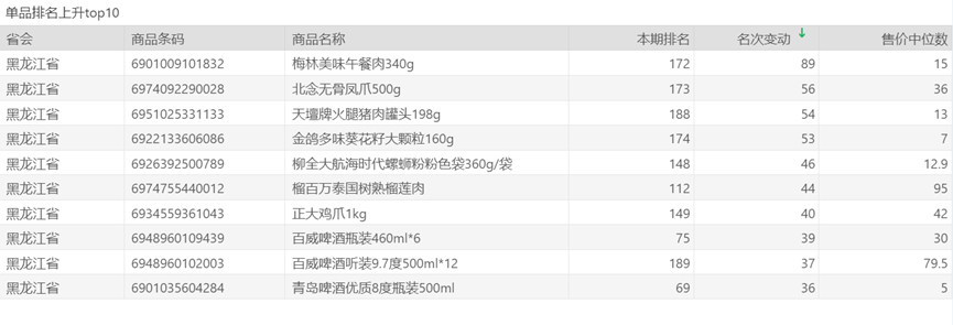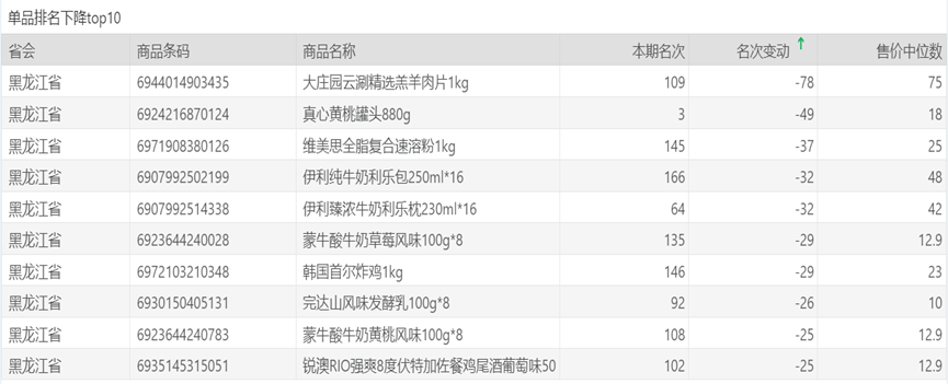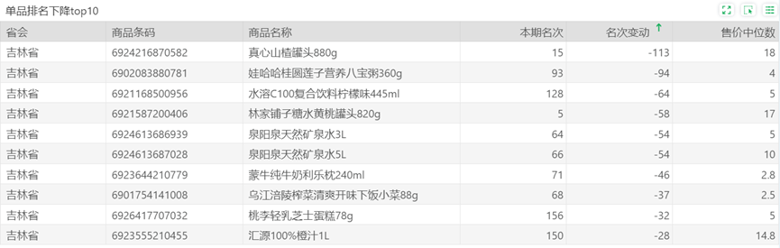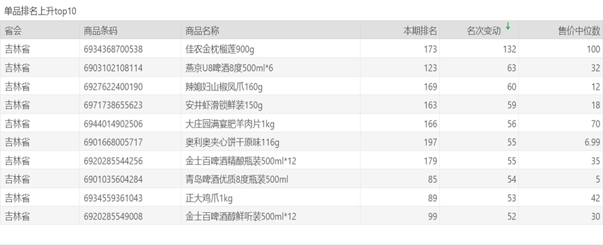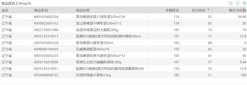 | 排名 | 名次变动 | 商品条码 | 商品名称 |