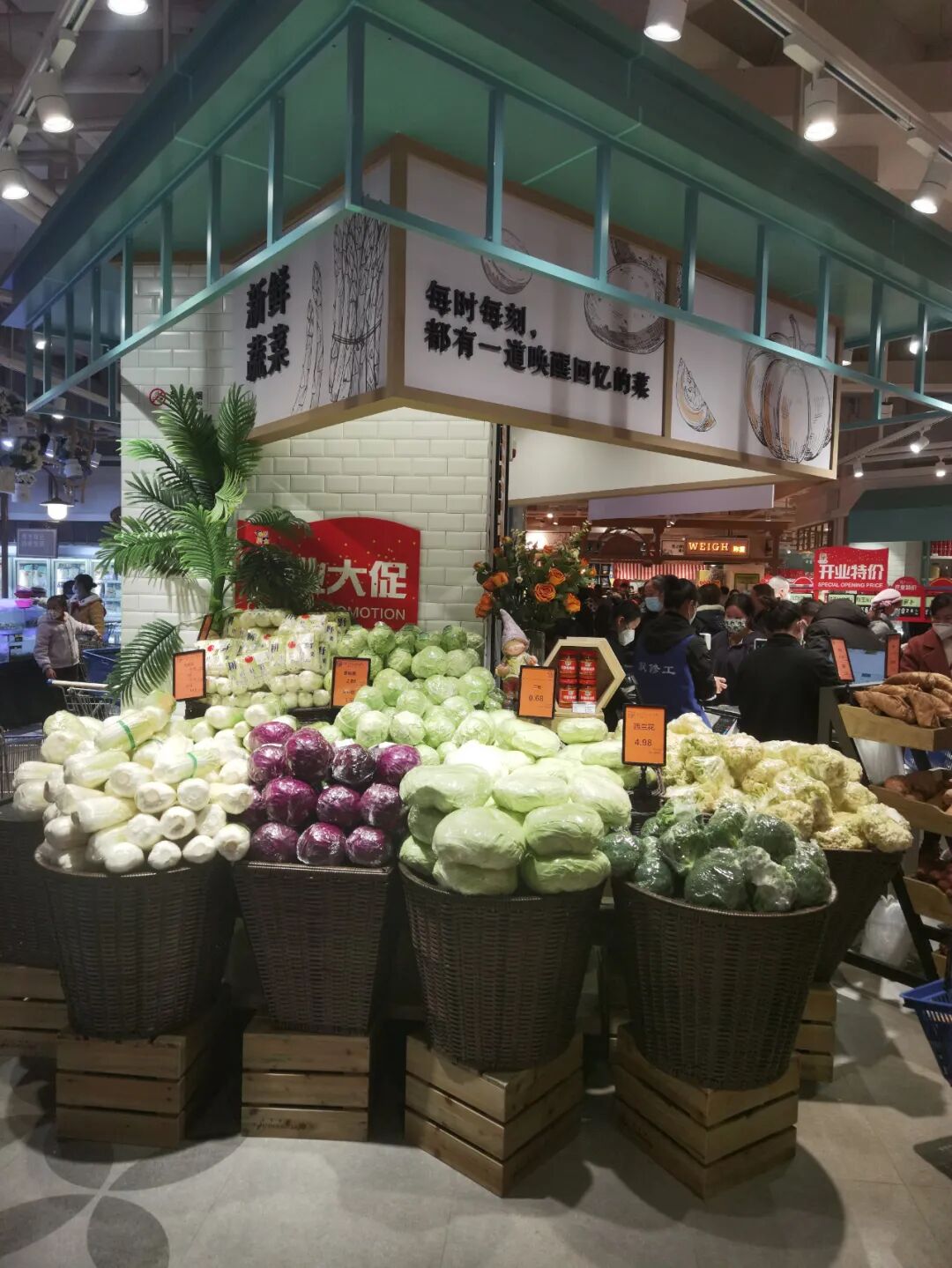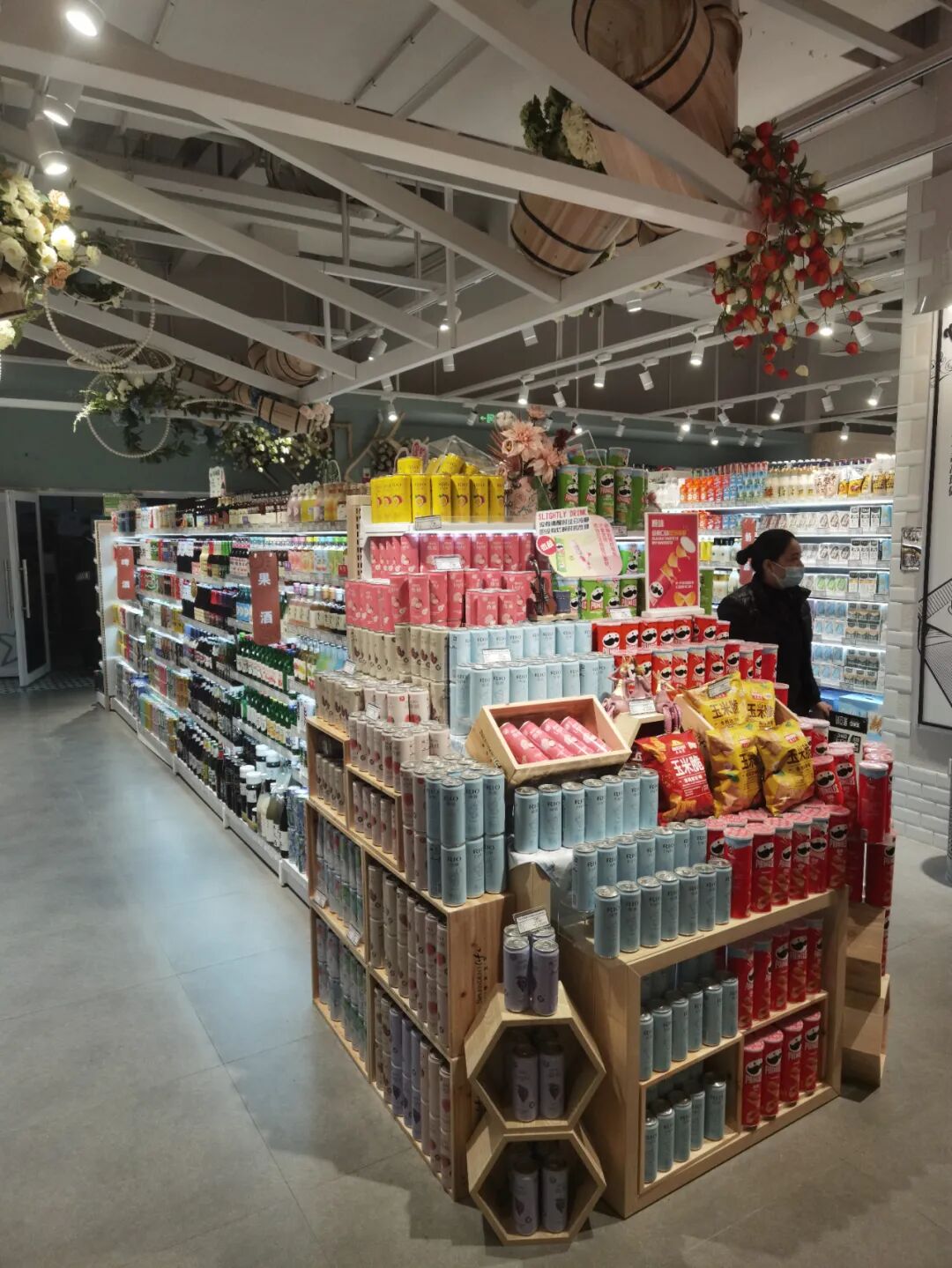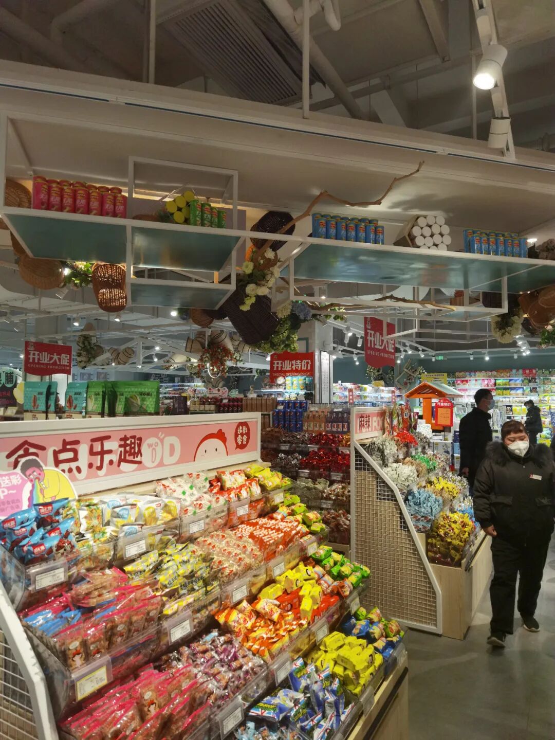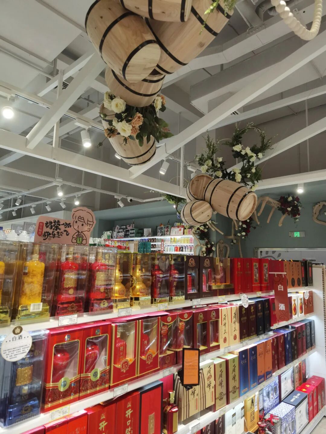很多企业最近几年在装饰装修上大费周折,甚至花巨资对门店进行豪华装修,但这些对销售及来客并没有太大的帮助,毕竟顾客是为了买商品,而不是参观你的装修,所以零售行业有句话,你的卖场最好的装修就是你的商品,最好的风水就是员工状态。做的好的企业,更重视的必然是商品及陈列展示,重商品,轻装饰,要把该花的钱花在商品和服务上,只有这样顾客才会买账,香江百货这家新店就把重商品,轻装饰发挥到了极致,装修不浮夸而且大气,比如在酒区上方做一些酒桶的装饰,点缀整个区域,散装食品仅做了一些箩筐装饰,生鲜区只在包柱区域做了一些吊楣并写了一些网红语,让顾客看着舒服,从而增加购物体验感,让顾客荡漾在购物的乐趣中,从而不能自拔。![]()