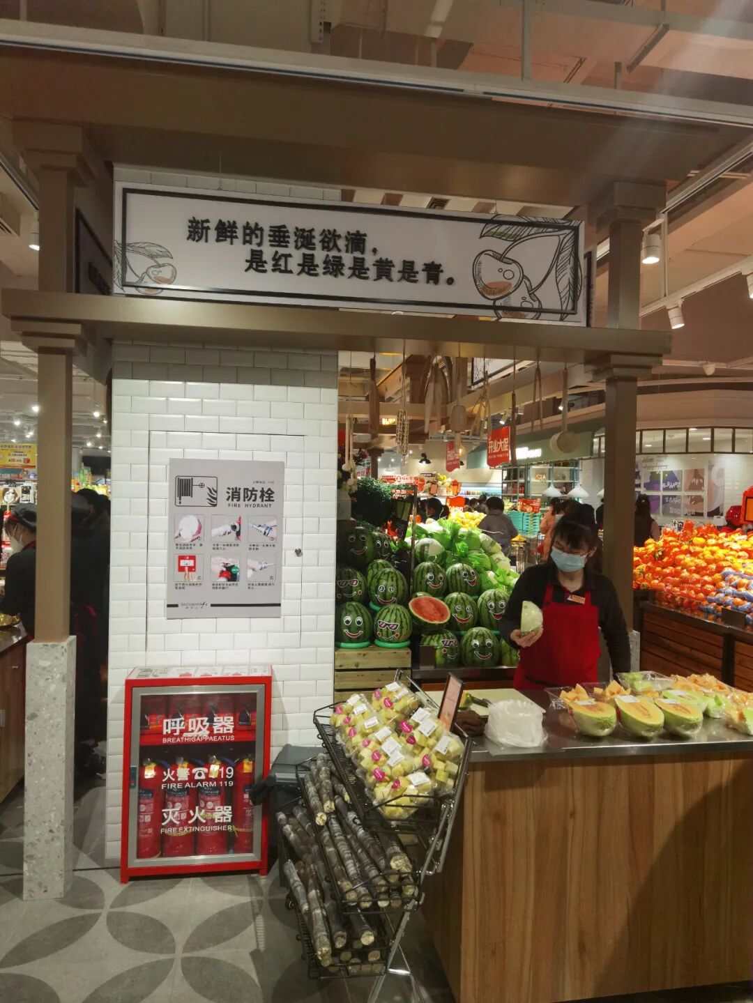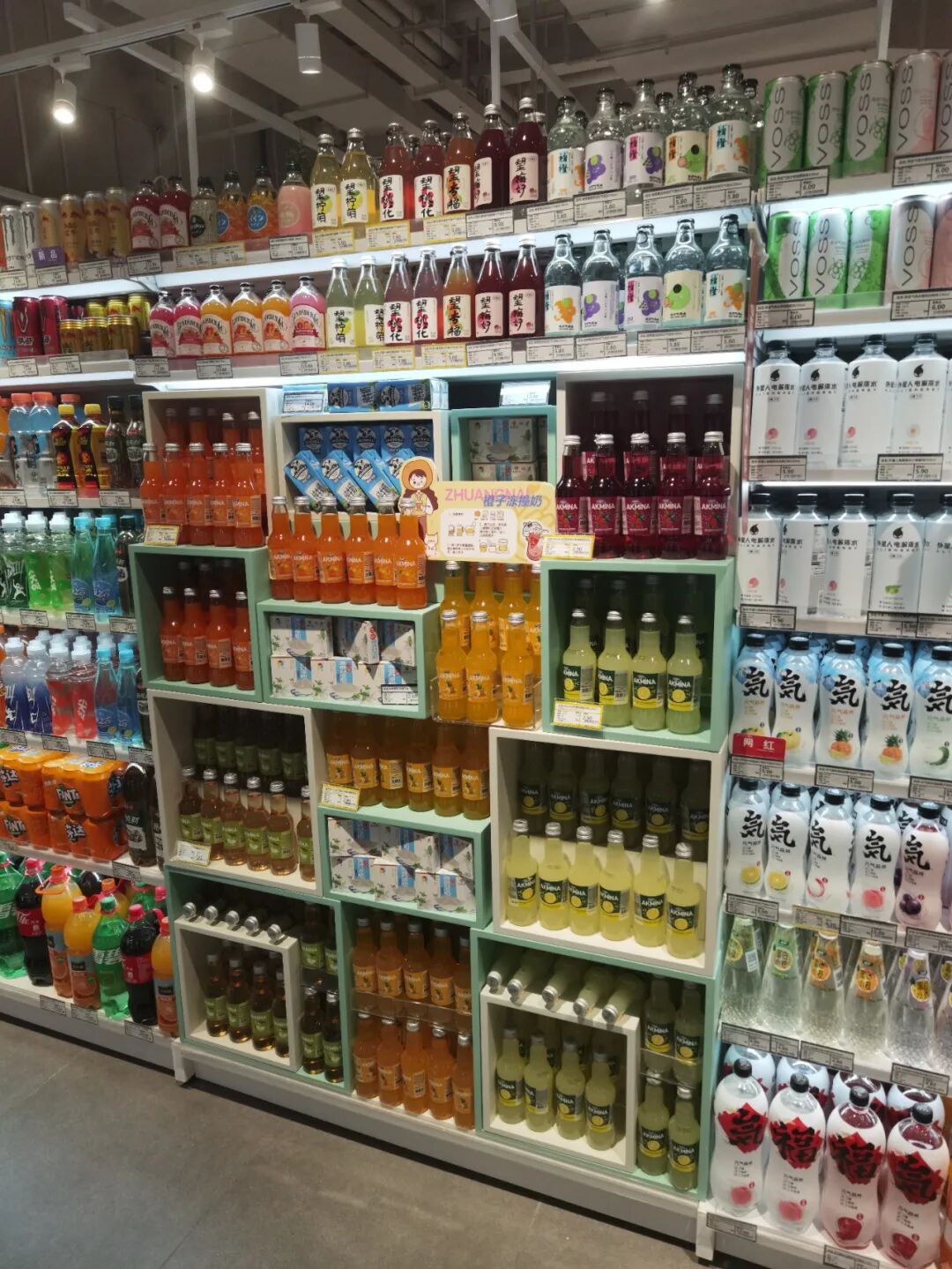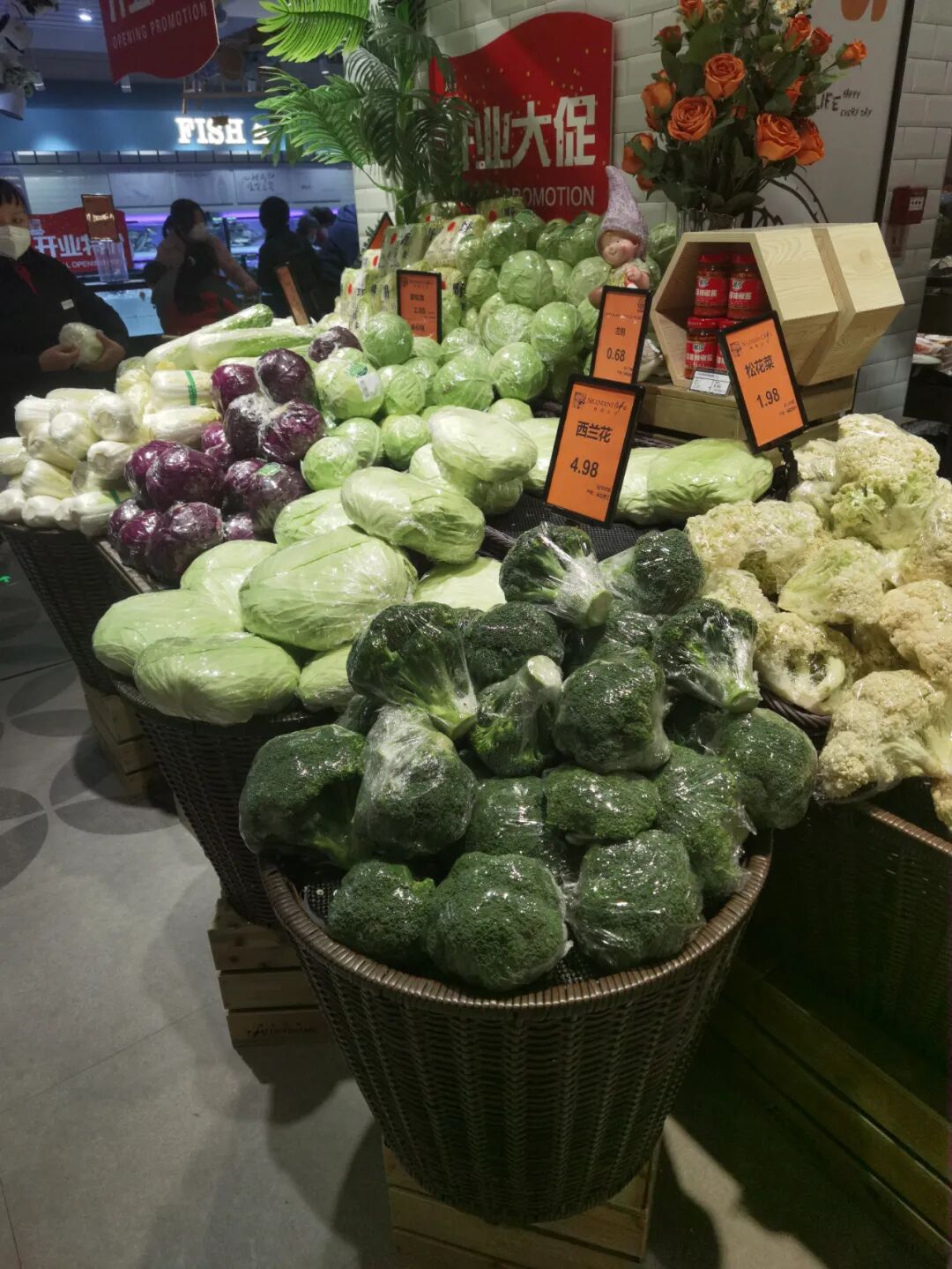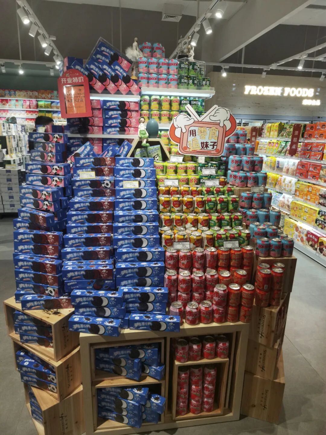 很多企业最近几年在装饰装修上大费周折,甚至花巨资对门店进行豪华装修,但这些对销售及来客并没有太大的帮助,毕竟顾客是为了买商品,而不是参观你的装修,所以零售行业有句话,你的卖场最好的装修就是你的商品,最好的风水就是员工状态。做的好的企业,更重视的必然是商品及陈列展示,重商品,轻装饰,要把该花的钱花在商品和服务上,只有这样顾客才会买账,香江百货这家新店就把重商品,轻装饰发挥到了极致,装修不浮夸而且大气,比如在酒区上方做一些酒桶的装饰,点缀整个区域,散装食品仅做了一些箩筐装饰,生鲜区只在包柱区域做了一些吊楣并写了一些网红语,让顾客看着舒服,从而增加购物体验感,让顾客荡漾在购物的乐趣中,从而不能自拔。![]()