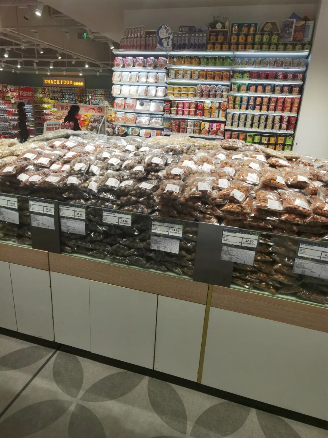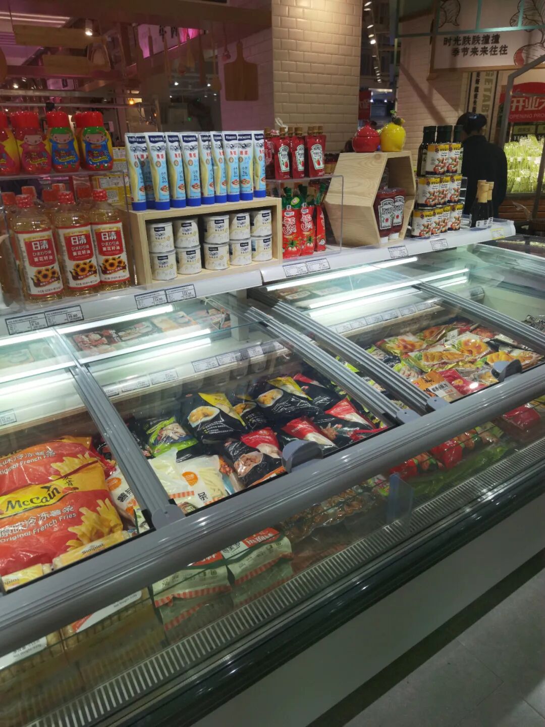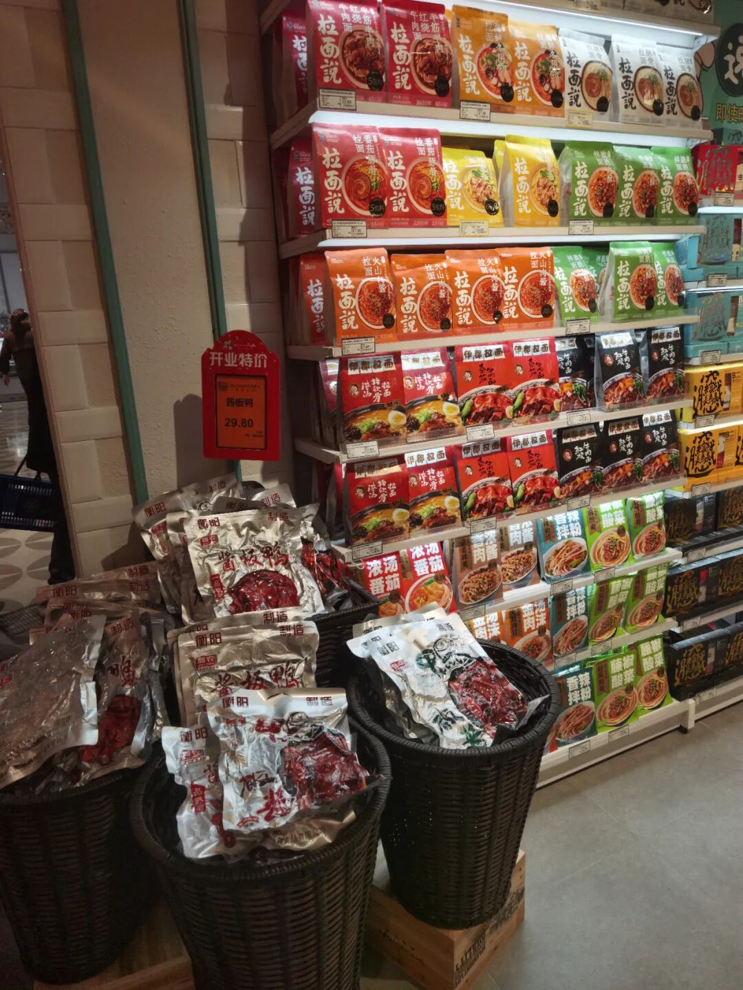 我们常说一句话,什么样的商品决定什么样的客群,大家一直再强调追求客群年轻化,但你卖场没有年轻人需要的商品,导致我们所想和所做的不再一条线上,所以很多老板抱怨客群质量不高,核心问题就出在了商品上。现在很多零售企业感觉很麻木,即便你的采购不知道该在什么季节采购什么商品,那么竞争对手和标杆企业就是你最好的引进渠道。笔者记得我们以前采购商品最笨的方法是去竞争对手那里调研,看到新商品,都会观察该商品的陈列位(是否在黄金陈列位)、商品的陈列排面(是否最大化),看顾客的购物篮是否青睐此商品,然后拍下商品的厂商电话,打电话咨询当地代理商的情况及联系方式。不是采不到好商品,而是我们的采购懒了,不愿意去费心寻找了。这究竟是采购出了问题,还是公司机制出了问题,值得企业深思。香江这家新店的商品让人眼前一亮,入口是花卉,右边进口巧克力和冰激凌专柜,左边年轻人喜欢的花色酒和低温食品,一入口就是年轻人气息浓厚,仅咖啡品类就有速溶咖啡、浓咖啡、咖啡液、咖啡伴侣、猫屎咖啡、手工咖啡、咖啡饮品等,调味品的品类宽度深度更是令人咂舌。还有陕西biangbiang面,你的企业有吗?值得一提的是香江的百货品类做的非常好,众所周知,因为线上冲击,百货品类下滑的相当严重,香江给出了很好的模板,举例说明:它的毛巾只有三组,陶瓷只有两组,拖把衣架一共只有三组,锅具只有两组,菜板只有一个端架,冬季季节商品只有了三个端架,陶瓷杯一组,玻璃杯一组,保温盒保温壶一组,凳子一组,塑料盆一组,整理用品三组,洗衣粉一组等,但这些商品的选品是极为科学的,无论从功能、颜值、价格带、款式、色泽,基本可以覆盖商圈人群。香江百货这家店把调味品及休闲酒水品类放大,笔者认为其一定做过严谨的商圈调研,但这种模式适合现在当下的环境,值得借鉴。