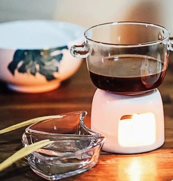 瑞士是盛产巧克力的国度,所以这一美食也被用在了“火锅”中。巧克力火锅和奶酪火锅的食用方法相似,用温火将捣碎的巧克力和少量甜酒、奶油一同煮成汁后,便可以用长柄叉插上切成块的水果蘸着巧克力汁食用了。甜甜的巧克力裹在清脆可口的水果外,吃起来分外享受。