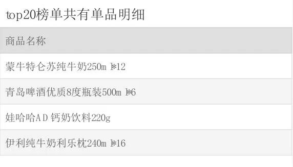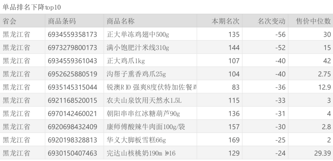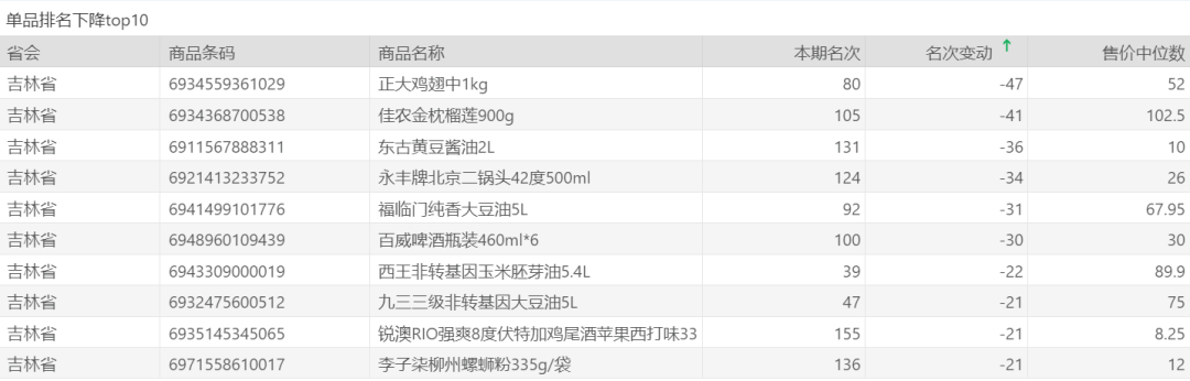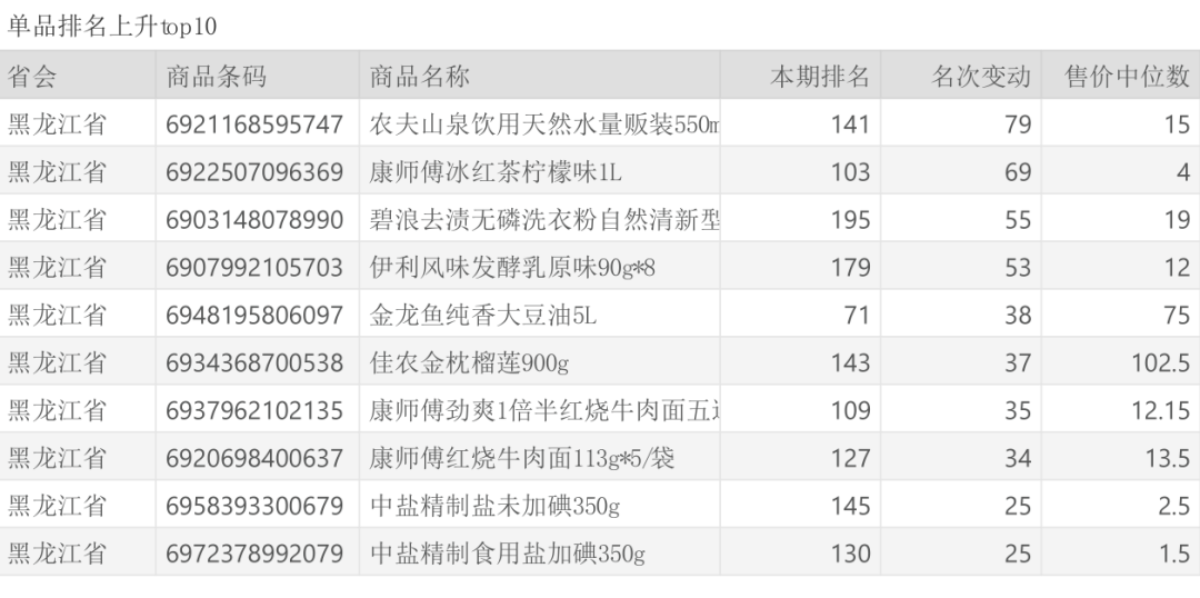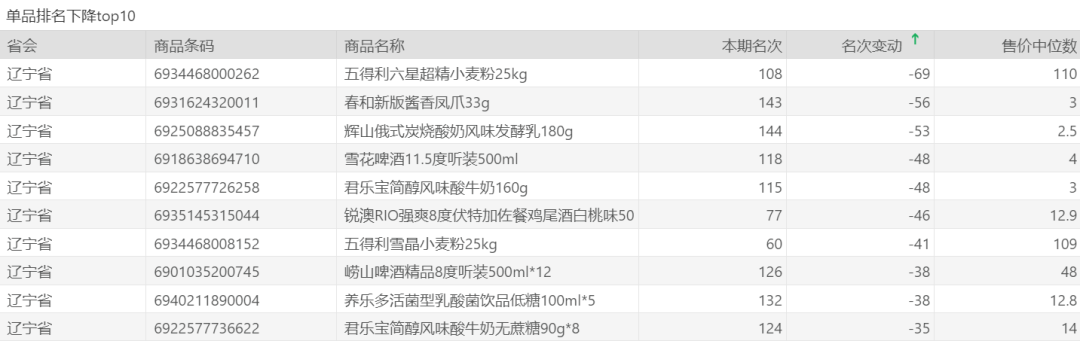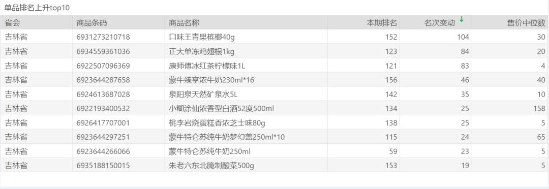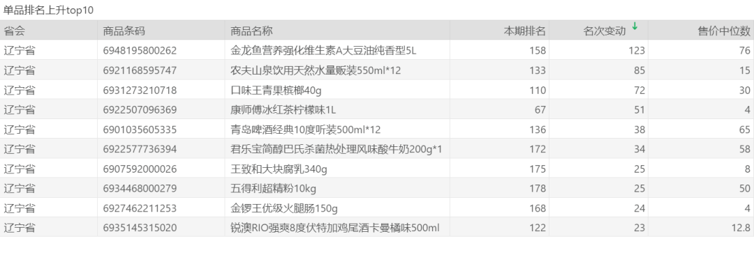 | 排名 | 名次变动 | 商品条码 | 商品名称 |