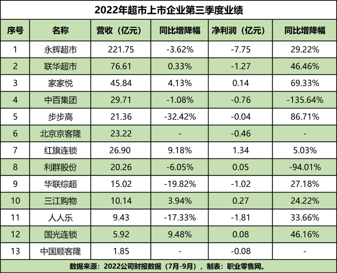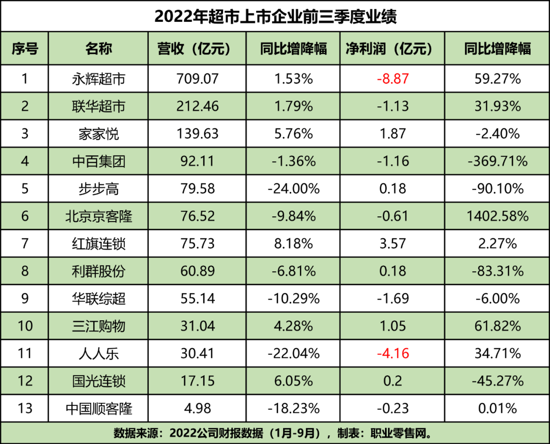 沃尔玛、大润发、永辉超市....15家超市2022年最新业绩出炉!(附统计表)