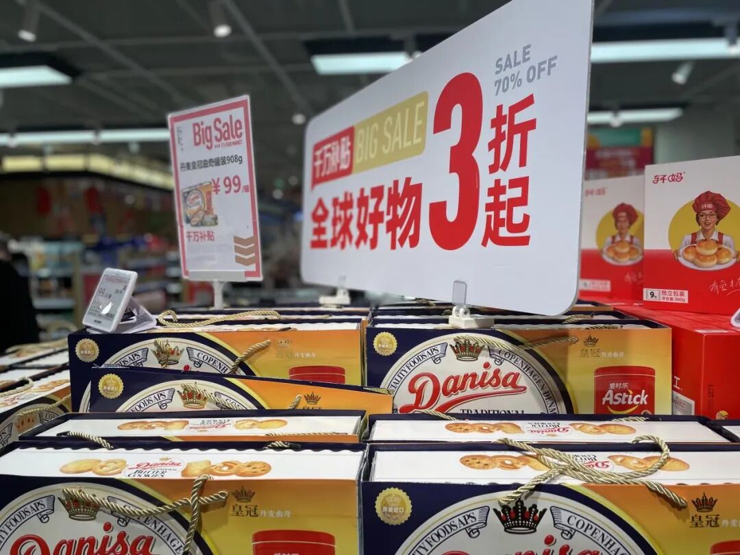 此外,门店考虑到消费降级形势,还在卖场开设了多个折扣点,比如糕点、蔬菜等品类都会及时进行打折处理。如此一来,不但可以高性价比吸客,还能有效降低损耗。