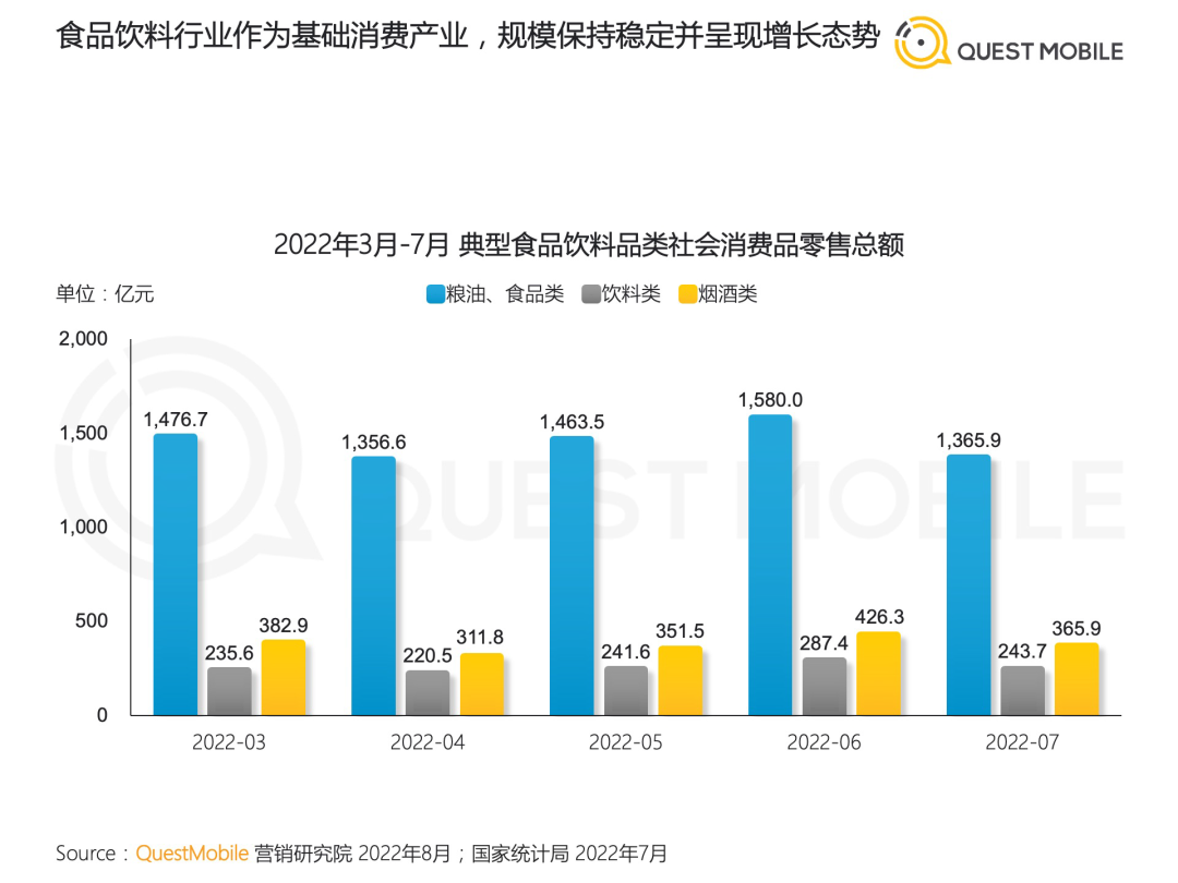 本文来源 | QuestMobile研究院 QuestMobile数据显示,作为基础消费行业,食品饮料增长态势稳固,尤其
