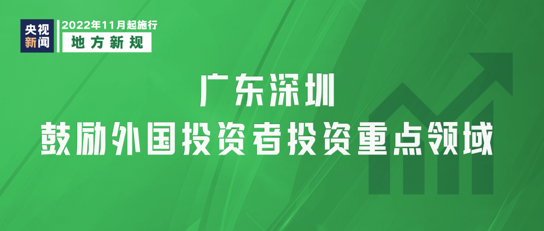 《深圳经济特区外商投资条例》11月1日起施行,鼓励和引导外国投资者在国家《鼓励外商投资产业目录》和深圳市重点发展领域内,在先进制造业、新兴产业、高新技术、节能环保等重点发展领域进行投资。
