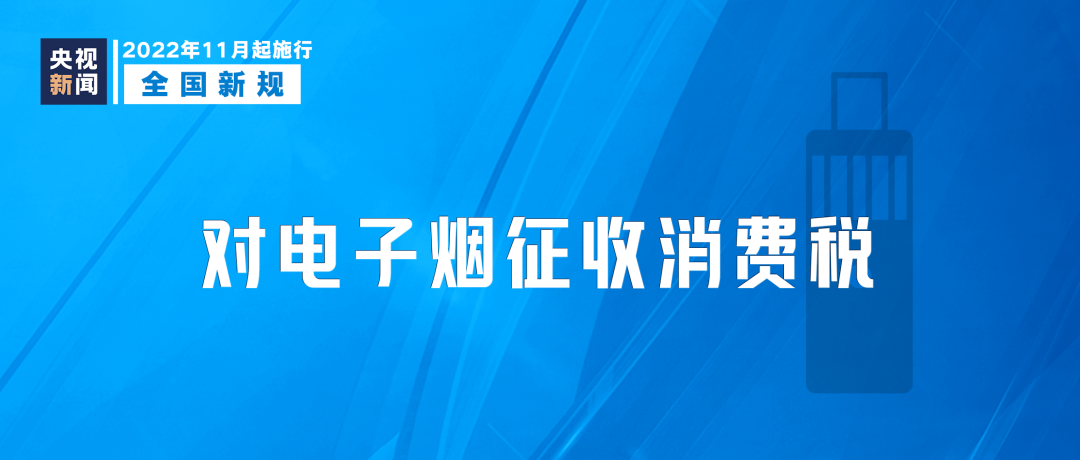 11月1日起,电子烟纳入消费税征收范围,生产(进口)环节税率为36%,批发环节税率为11%。