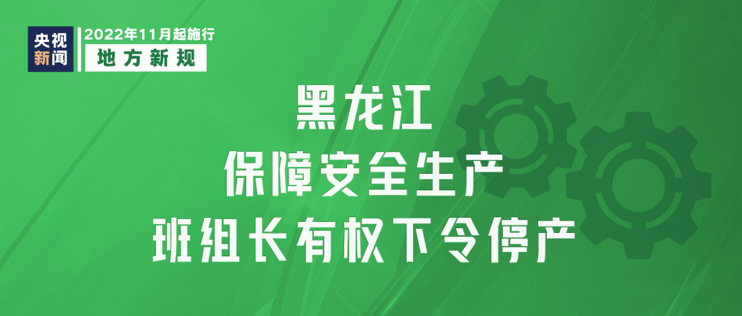 《黑龙江省安全生产条例》11月1日起施行,明确生产经营单位现场带班负责人、班组长和调度人员,在发现事故征兆时,有权下达立即停产撤离命令。