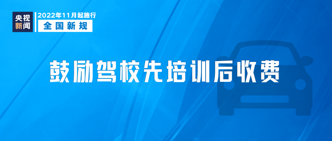 新版《机动车驾驶员培训管理规定》11月1日起施行,明确机动车驾驶员培训实行学时制,按照学时合理收取费用。鼓励培训机构提供计时收费、先培训后付费服务模式。