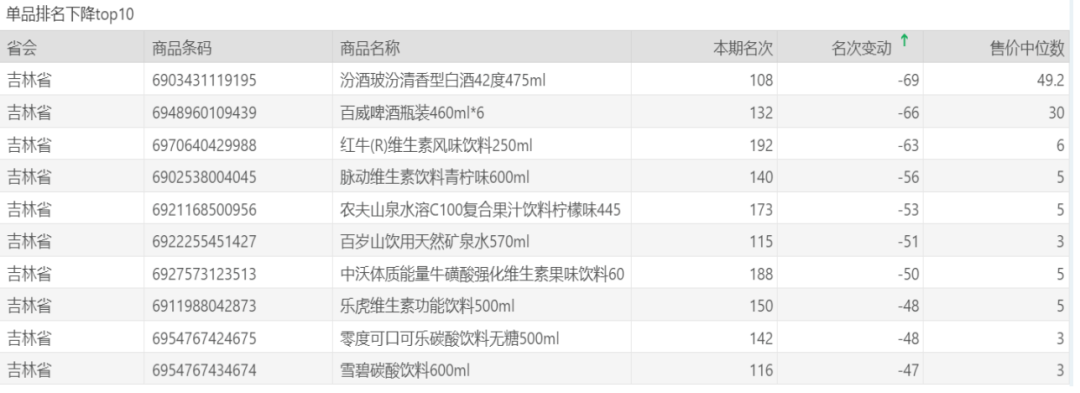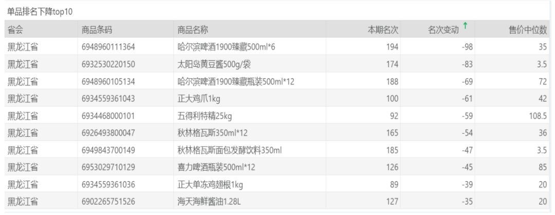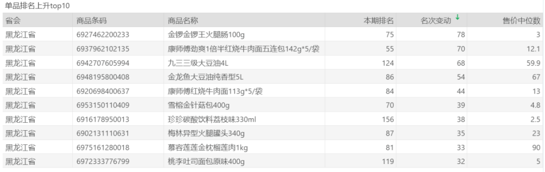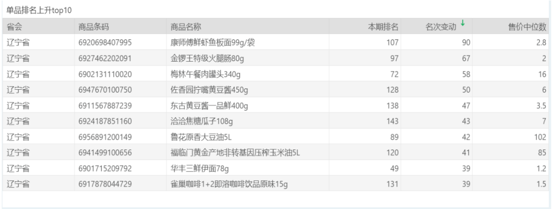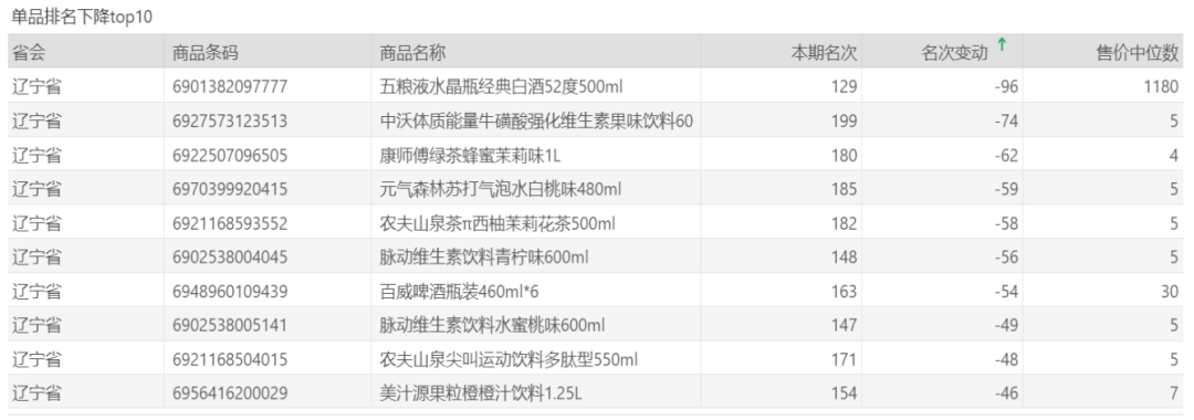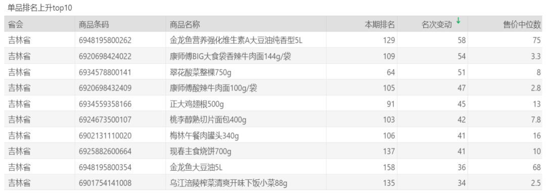 | 排名 | 名次变动 | 商品条码 | 商品名称 |