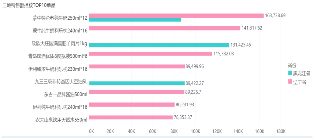 三地销售指数TOP10单品: