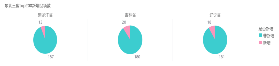 本期新增品项吉林最高,新增20个品项,辽宁其次18个品项,黑龙江13个品项 更新比例分别10%,9%,6.5%。