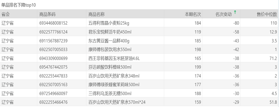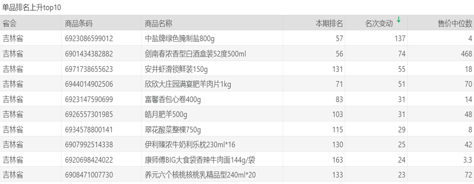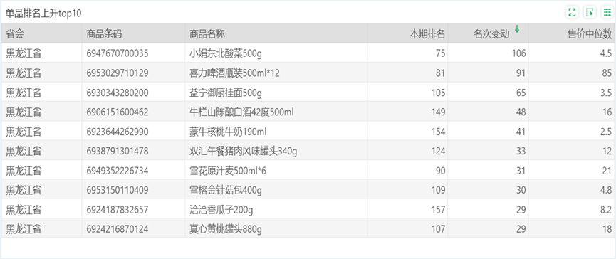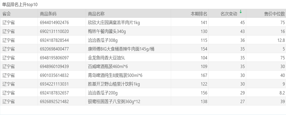 | 排名 | 名次变动 | 商品条码 | 商品名称 |