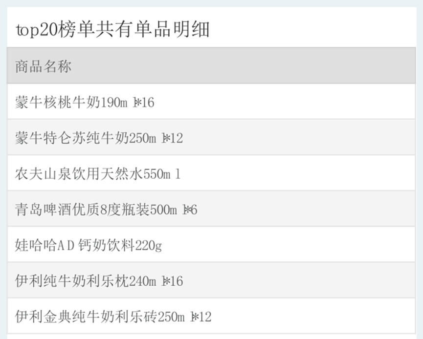 三地TOP20共有单品: