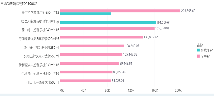 三地销售指数TOP10单品: