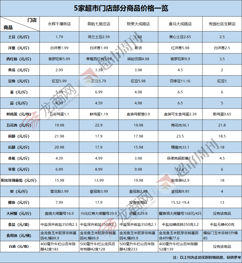 各种因素影响下,线下零售继续承压。拼到最后,就是对同一商圈顾客的细分与争夺战。日前,龙商网&超市周刊实地走访了北京丰台区岳各庄周边3公里内的几家超市,均定位社区商圈需求,包括永辉超市、物美超市、首航超市、盒马鲜生及一家社区生鲜店,涵盖大卖场、标超、社区生鲜店多种业态。走访时间为下午,实地观察了各家门店的商品陈列、价格特点、客流情况以及卖场环境和人员服务,龙商网&超市周刊发现,各门店业态不同、经营风格不同,呈现出来的运营状态也有明显差异,在面临行业竞争、生存压力时应对举措也不一样。01