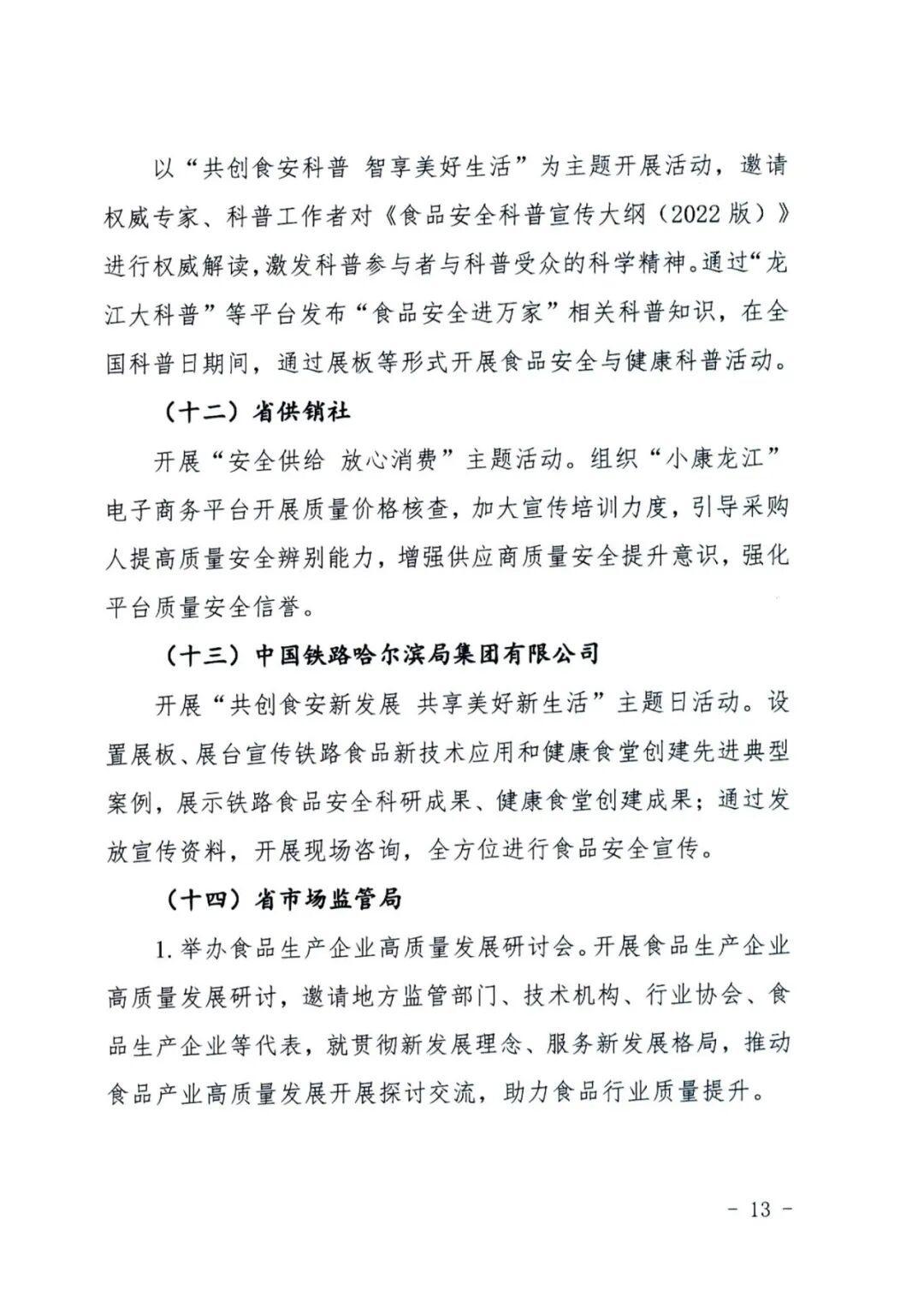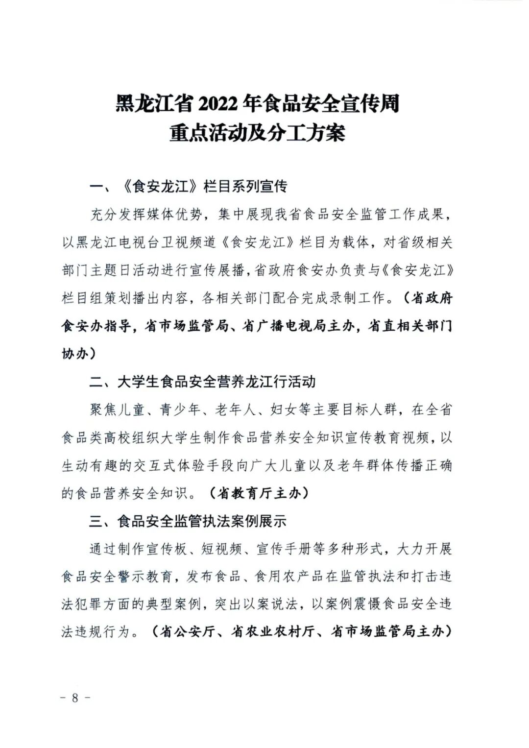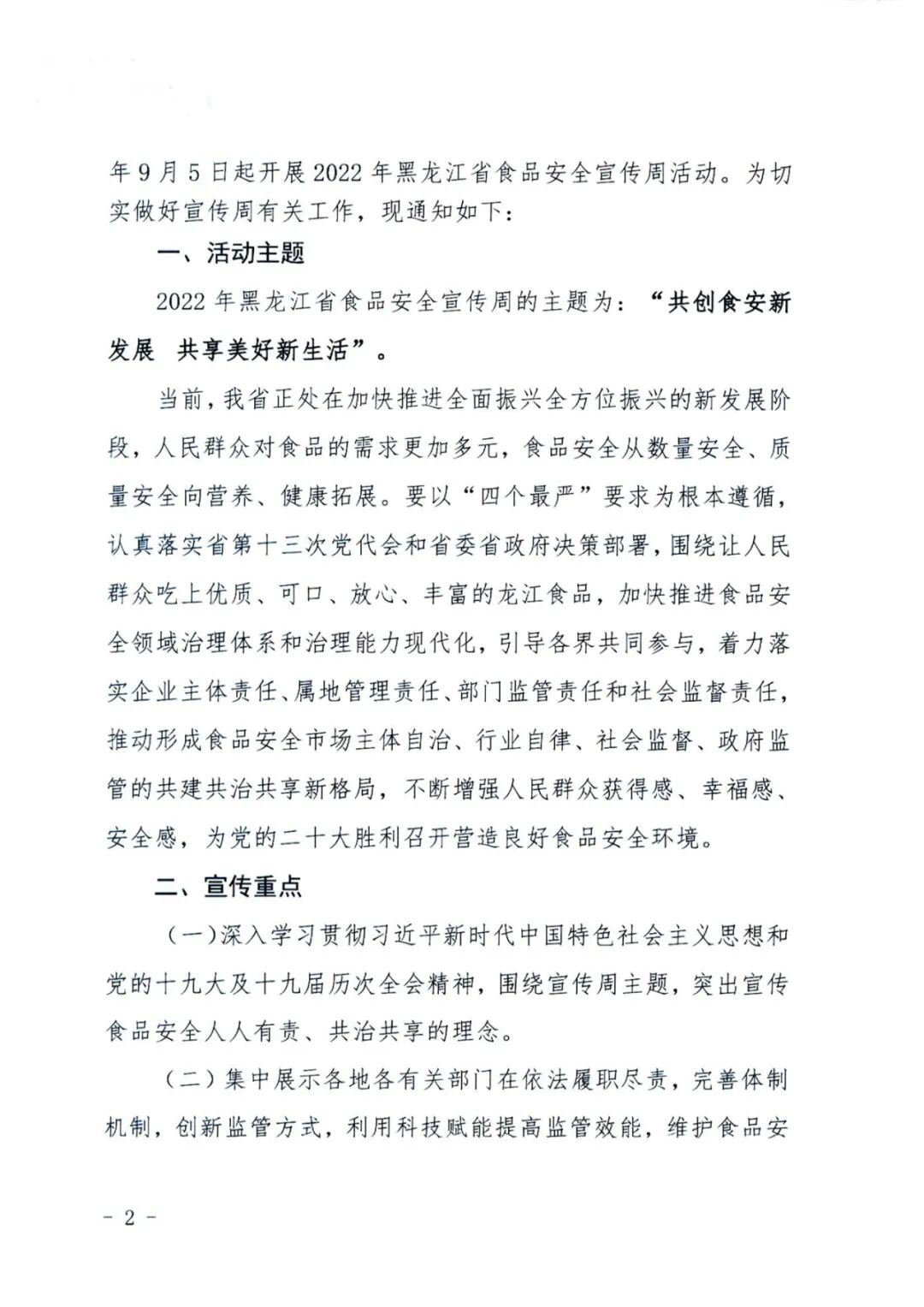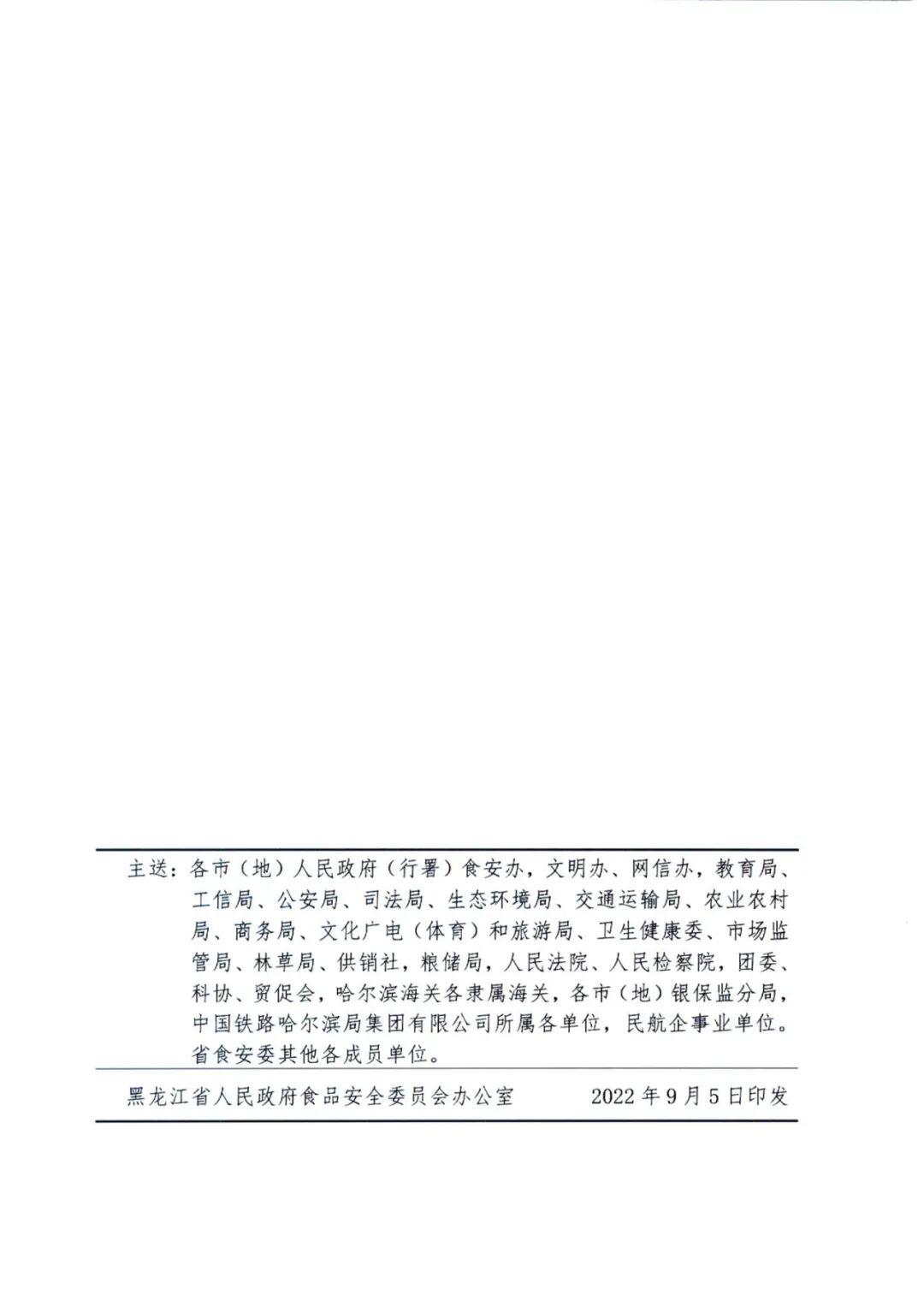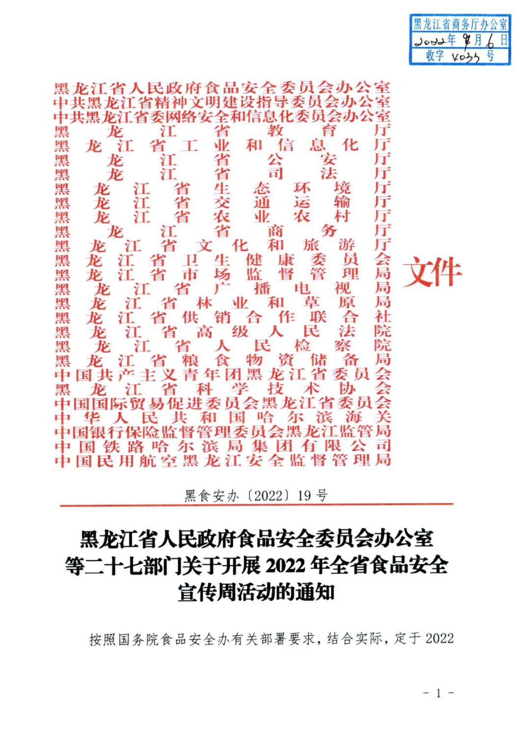 附:黑食安办[2022]19号 黑龙江省人民政府食品安全委员会办公室等二十七部门关于开展2022年全省食品安全宣传周活动的通知