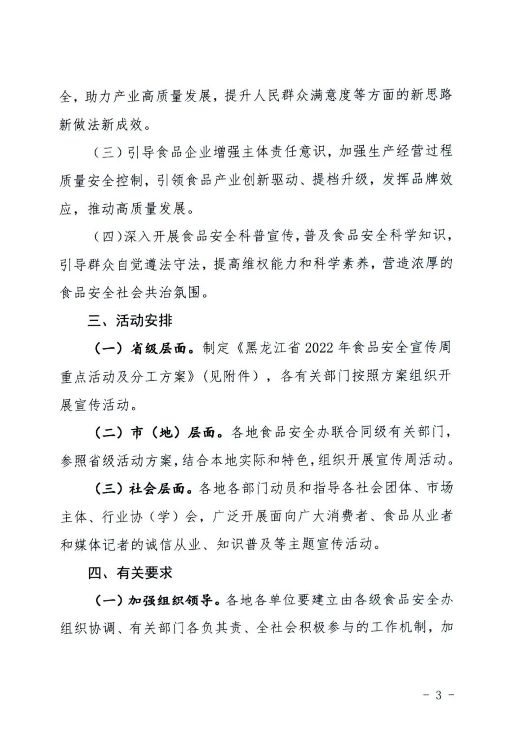 各会员企业、各相关单位:按照国务院食品安全办有关部署要求,黑龙江省人民政府食品安全委员会办公室等二十七部门定于2022年9月5日起