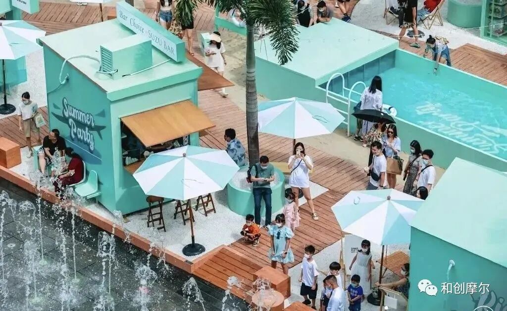 社区型商业中心是所在片区的亲子中心,这不仅体现在儿童类相关业态,也体现在亲子场景的打造,成为“遛娃圣地”。一般来说,更需要重视塑造自然融合的空间,将自然场景与商业场景融合,将建筑与景观融合,利用绿化元素,构建亲子娱乐休闲设施。比如充分利用室外广场和屋顶花园,设置滑板公园、沙坑、攀爬区、儿童球场等亲子设施,以及一些看顾休息场所及儿童乐园,构建亲子场景。