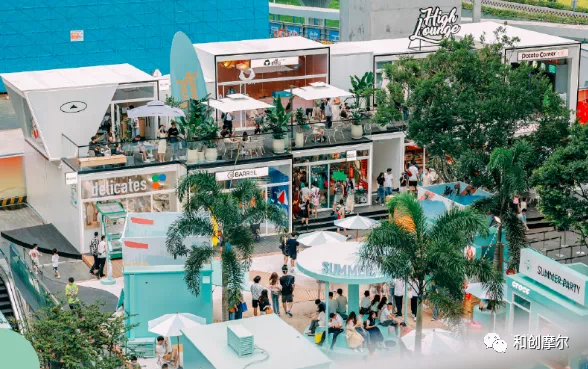 ◆首先体现在建筑载体上,需要一定尺度的公共空间构建社交场景。半开放式的建筑体是一个不错的选择,以开放的建筑理念,促进室内外空间的融合,例如泰国commons,半开放式的建筑体促成了人与自然、人与人之间的交流融合,开放的建筑理念还体现在露台、连廊处景观化的处理,打造优美惬意的社交环境,营造室内外融合的游逛感,还可以在其中布局休闲餐饮等相关业态,提升运营效率。