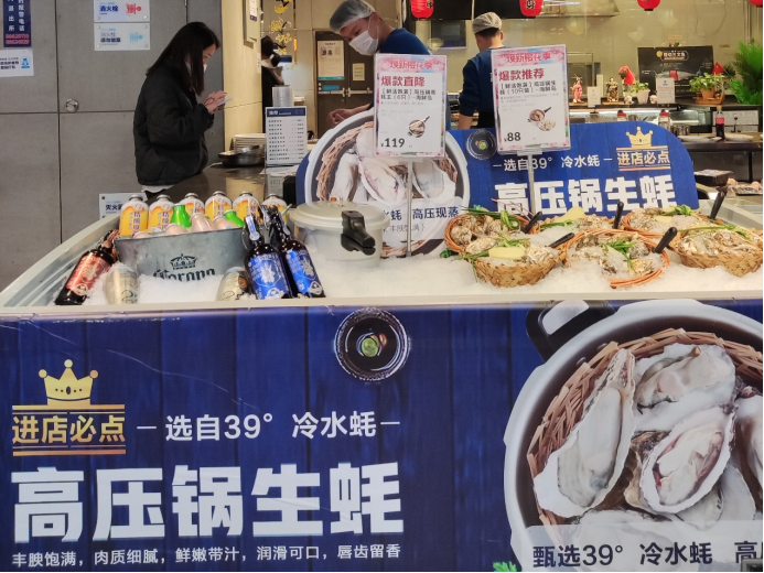 目前,庄河出产的生蚝在盒马门店和其线上平台销量同比去年翻了一番。盒马水产采购经理邹威邦表示,为突出盒马村商品,下一步盒马线上线下将开设盒马村商品专区,陈列、营销等资源会有所倾斜,全力打出品牌效应。“现在是8个单品,后续随着合作加深,还会不断扩充品种,到十几、几十个单品都有可能,丰富品牌品类结构。”今年6月初,盒马开启“盒马夜肆”,与玉洋集团商定分几批、每批提供1万只生蚝,在全国数百家门店做免费试吃。![]()
