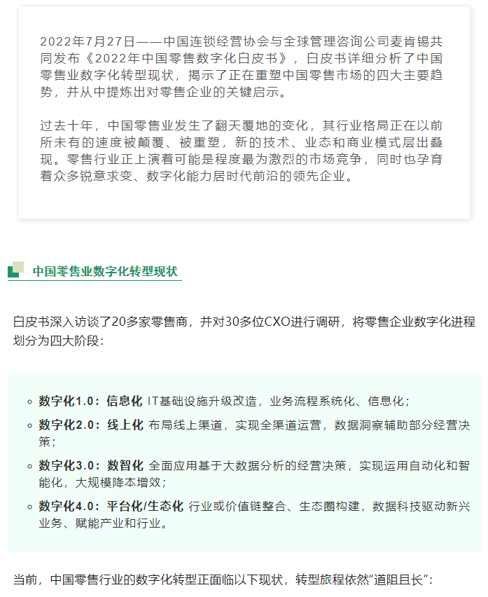 四大趋势重塑中国零售市场,行业深度拥抱数字化转型——《2022年中国零售数字化白皮书》