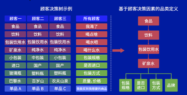 所以曲晓旭认为,在包装饮用水这一层级需要进行水平切分,这样的品类定义才更符合企业现状,更术语一点讲,水平切分的部分,实际是顾客购物时的决策因素,也叫做商品的功能属性。