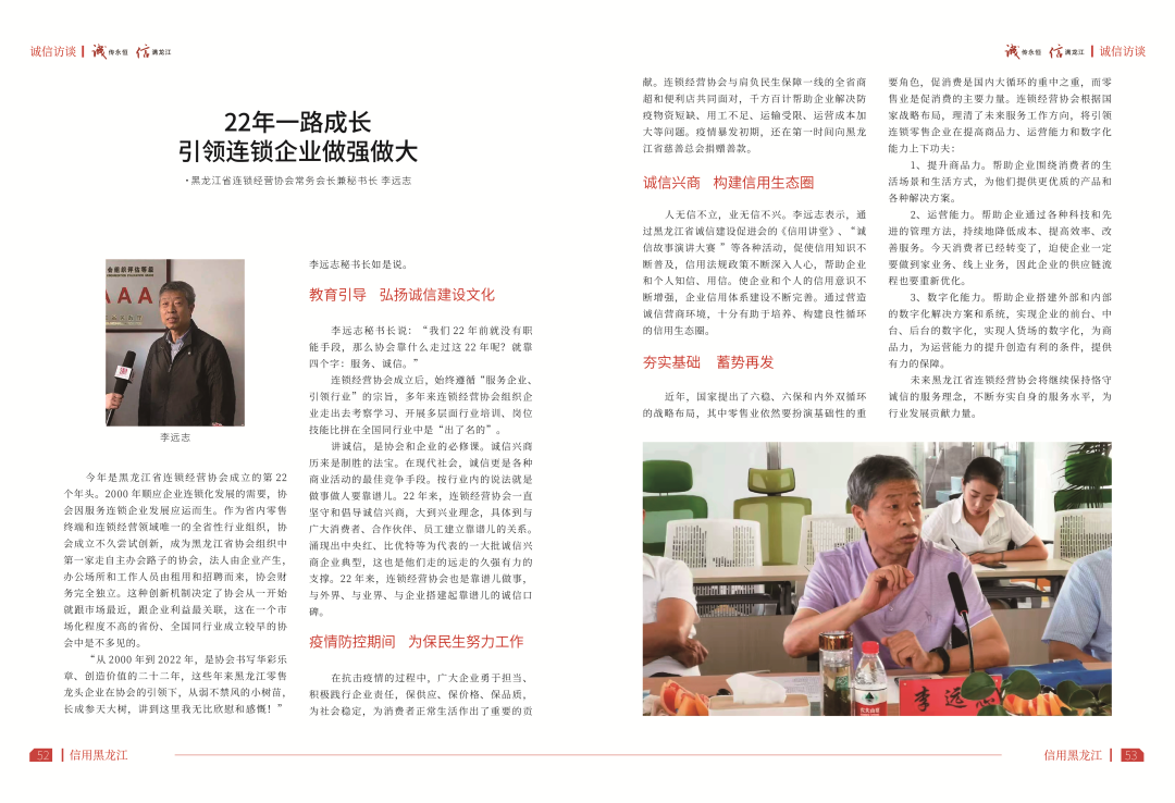 此访谈选自《信用黑龙江》2022年3月总第一期今年是黑龙江省连锁经营协会成立的第22个年头。2000年顺应企业连锁化发展的需要,协