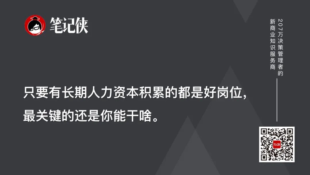 所以说只要有长期人力资本积累的都是好岗位,尽量找上行赛道,但也不用太过在乎行业兴衰,最关键的还是你能干啥。