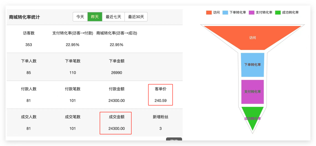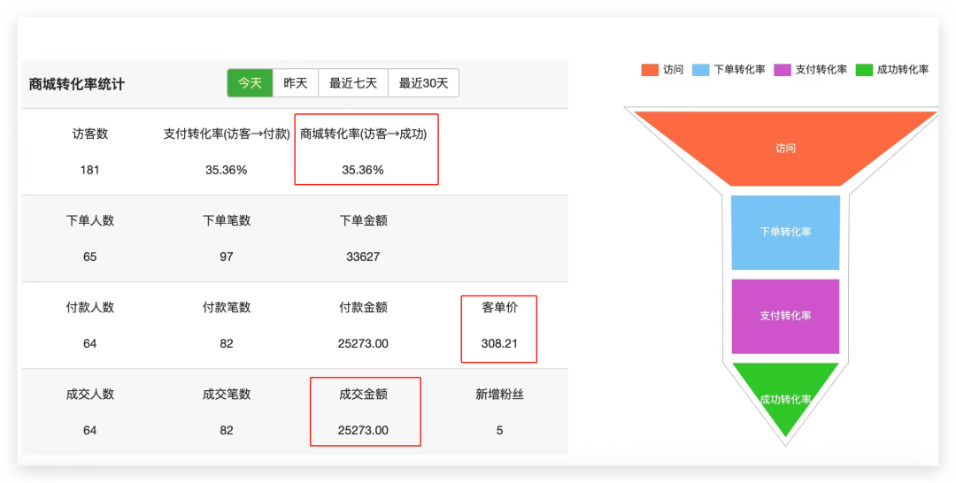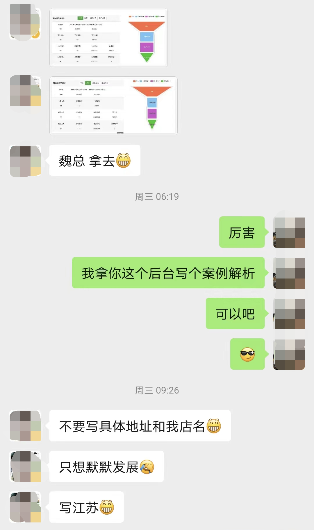 从以上的数据可以看出,这位江苏的水果店老板可谓是将私域流量的效果发挥到了极致,通过服务号和个人客服号的沉淀。该商户每天线上的营业额稳定在2w+,客单价高达200元以上,转化率更是达到惊人的35%+。在转化率与客单价的数据对比中,个人认为都是很多门店运营无法达到的天花板。