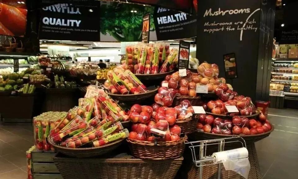 视觉系统:不需要一味追求装修效果的高大上,符合定位,合适最重要;布局、动线、陈列需要专业,科学。一方面是整体的风格要比较统一,要有门店CI系统及灯光布置的整体化、形象化和系统管理,陈列道具的使用;另一方面,合理动线设计要考虑,出入口规划等等,更有细节的部分甚至是超市死角利用等问题。此外,陈列面积要根据品类的预估销售进行合理陈列以及关联陈列,陈列构图、色系搭配、堆头陈列要求等专业知识都是学问,需要系统化学习。
