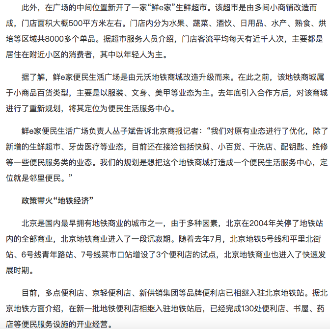 首页 / 要闻 / 连锁经营 / 生鲜超市入驻 北京地铁商业指数再提升