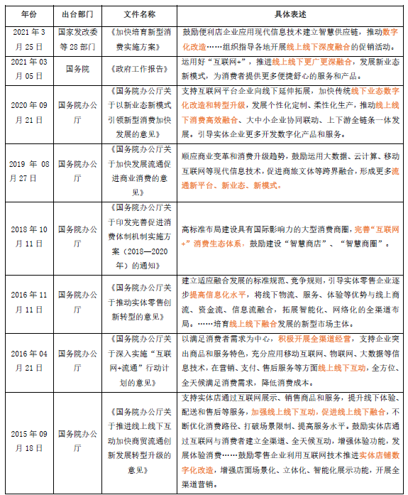 表2 近五年来支持零售新业态的政策文件梳理