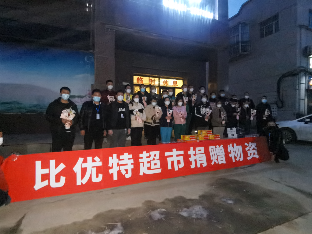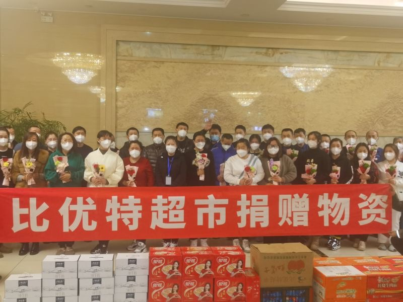 集团为抗疫医护人员送去了满满一车的水果、牛奶等慰问品,并向医护人员表达了亲切的慰问和关怀。杨林院长表示,超市行业也是抗疫保民生的重要单位,比优特公司在这么紧张、忙碌的时候,还能够想着我们防疫人员,这令我们非常感动,希望比优特超市在沈阳发展越来越好,为当地百姓提供更好商品、好服务。
