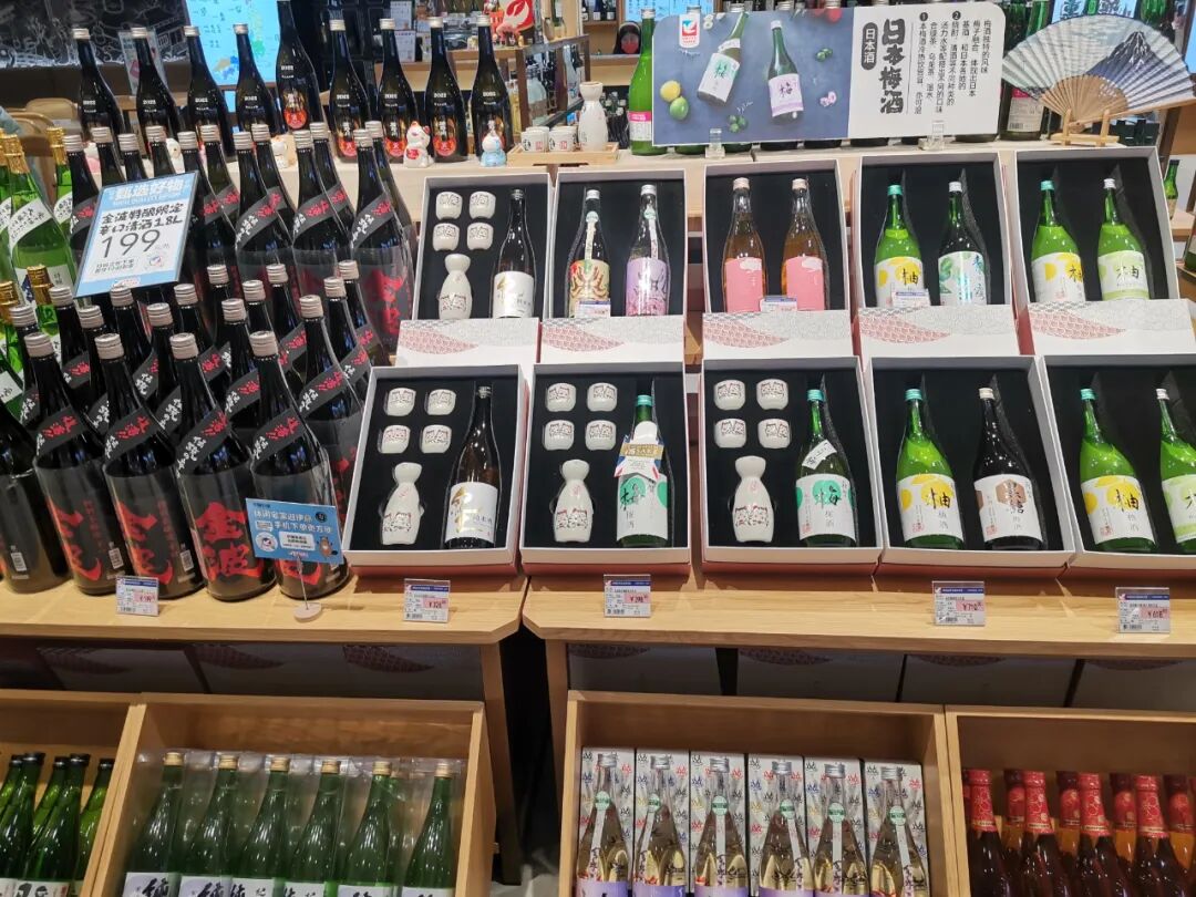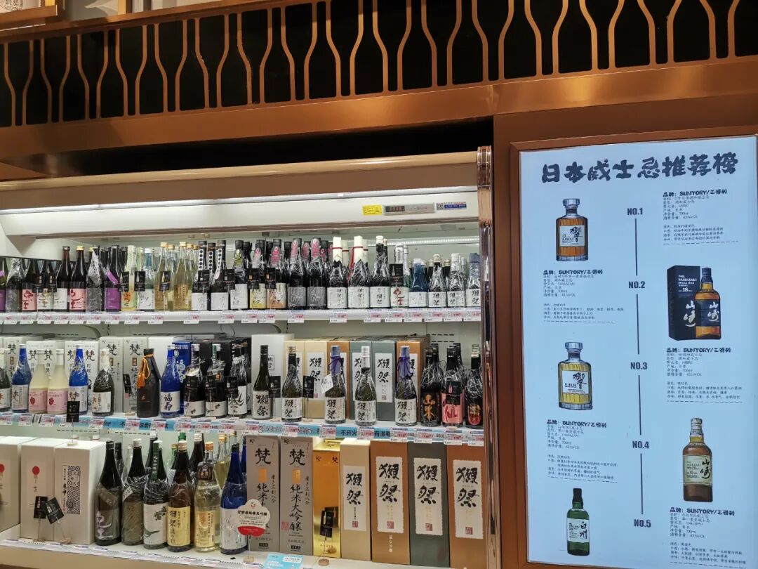 酒藏区经营面积50-60平米,单品数超300支,其中清酒、梅子酒、烧酒、威士忌等日本酒系列占大头,占1/3达100多个SKU,是伊藤其他店铺的两倍,做了大幅扩充。而红酒、白酒,金融城店进行了压缩,精选高品质热销单品,较常规卖场更精简。