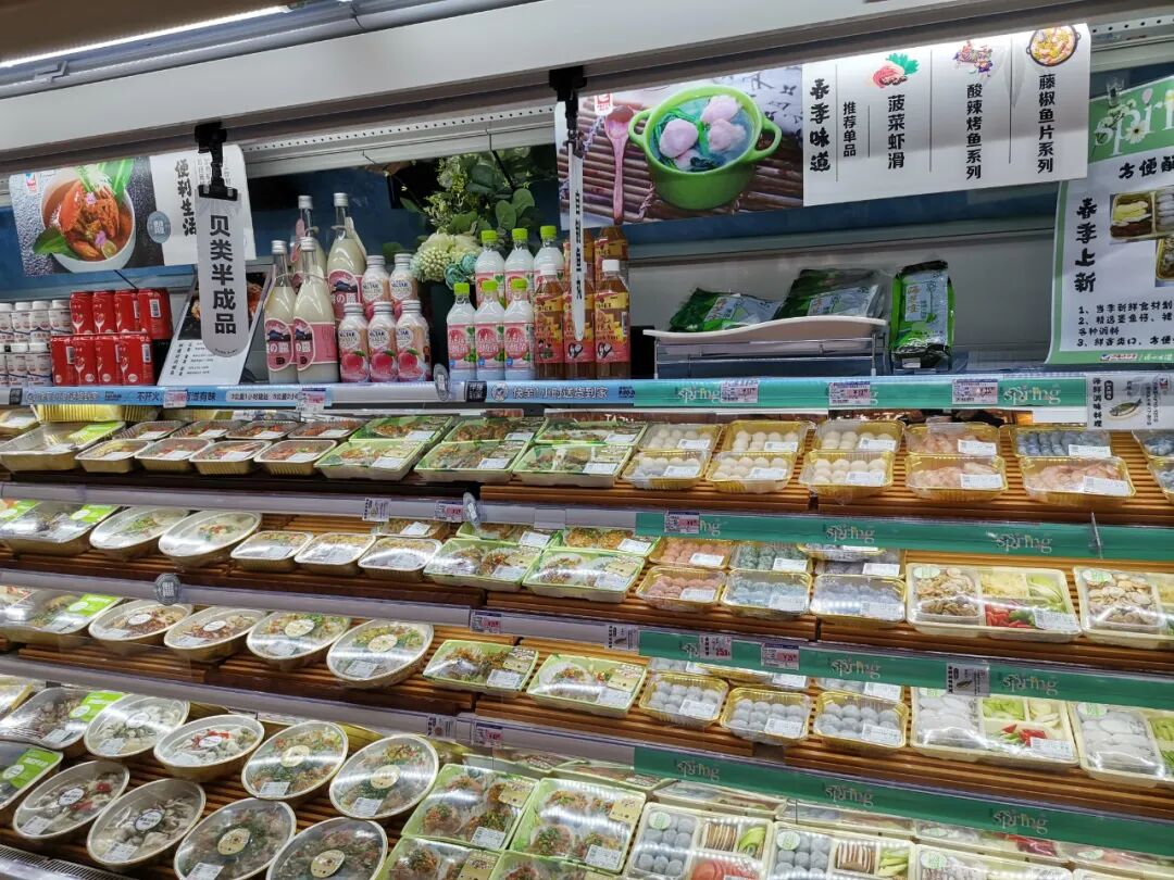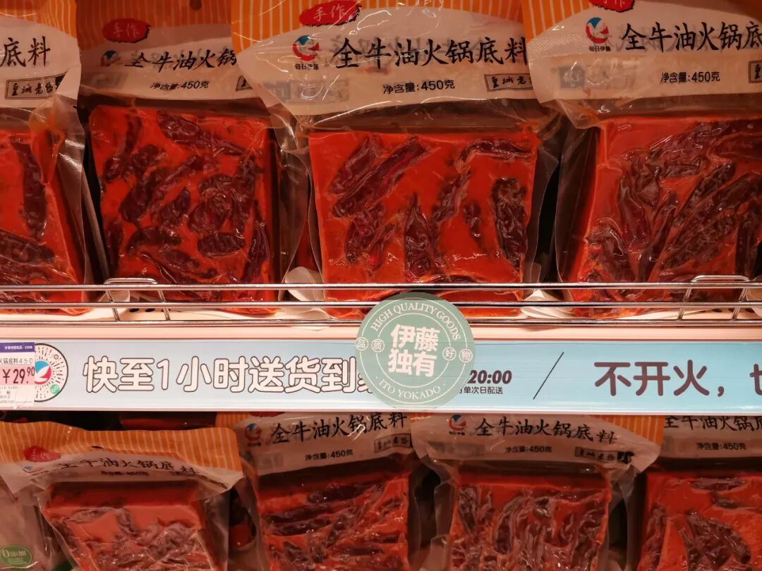 商品组织上,强调便捷、新鲜、健康,日本商品与鲜食、预制菜品、冷冻速食是重点品类,基本生活品如大米、粮油等则做了精选删减。从生鲜商品结构看,压缩了基础生鲜品,增加伊藤中央工厂生产的半成品和净菜,同时扩充了适中价格与份量的一人食或两人食、冷冻速食。
