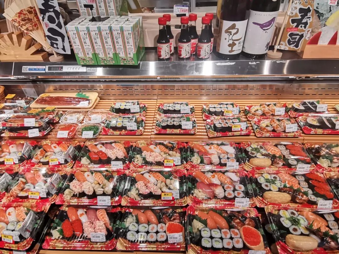 日本商品几乎涵盖全品类,如基本的日式小吃、便当、寿司,大概600+单品占比7%,还有调味料、酒饮、休食、巧克力、冰淇淋、伴手礼、冷冻面包、米面粮油、日杂等常规标品,1500多支占门店20%左右,进口商品占半数,非常齐全。
