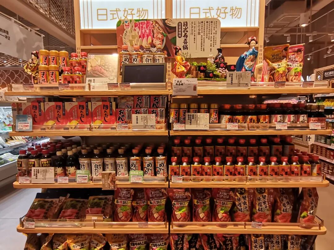 调料也引进了很多新品,如日本的盛田、井村屋系列,且设立专区,分日式调料、日式酱油、日式咖喱,其中日式调料又分日式味噌、日式拌饭料,SKU数累计接近330支,品类做得宽且深。