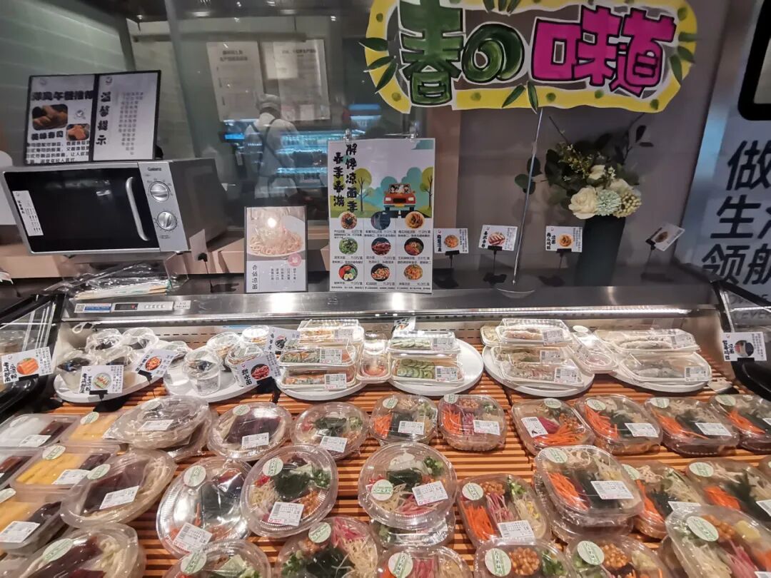 考虑到周边办公人群的午餐需求,金融城店通过与商家反复沟通,打造了以健康理念为主的“便当吧”,做了很多包括蒸、煮、炒、炖、炸等烹饪工艺在内的即食即热品,种类自选、价格适中,15-25元不等,如一荤一素15元、两荤一素25元。另外,充分考虑便当的季节感,提前做研发,每周对菜品进行切换如夏季主打清凉菜品、秋季滋补、冬季烧炖等。