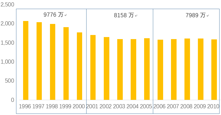 图2 1996-2010年间我国大陆地区历年出生人数(万人)
