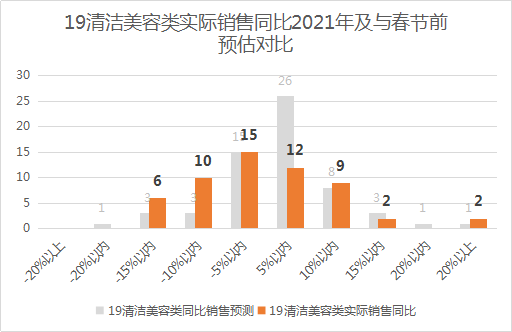 烘焙类商品的专卖店很多,从竞争中脱颖而出的方法就是加大研发新品的能力,达到差异化,树立主力大单品。12、粮油类(米、面、杂粮、挂面、烹饪油)的表现基本符合预期,销售同比2021年增长20%以上的有4家,增长15-20%的有3家,增长10-15%的有8家,增长5-10%的有7家,增长5%以内的有12家,有22家同比下降。粮油类商品春节销售受团购影响很大,另外烹饪油、杂粮的礼盒品种少。13、熟食类(包含主食加工、散装肉制品、熟食加工、小菜、配菜)的表现基本符合预期,销售同比2021年增长20%以上的有7家,增长15-20%的有1家,增长10-15%的有6家,增长5-10%的有7家,增长5%以内的有13家,有22家同比下降。熟食类商品是零售企业的新护城河,以往大多以联营为主,受联营商制约,现阶段越来越多的零售企业开始自产自营,加工的品种也越来越多。14、蔬菜类(叶菜类、根茎类、瓜类与茄果类、菌菇类、花菜、芽苗、豆类、腌渍加工蔬菜、其他蔬菜)的表现基本符合预期,销售同比2021年增长20%以上的有4家,增长15-20%的有3家,增长10-15%的有6家,增长5-10%的有6家,增长5%以内的有15家,有22家同比下降。15、居家类(厨房用品、餐具、水具、一次性用品、清洁收纳用品、卫浴日杂用品、宠物用品、汽车用品、文体用品、箱包用品、玩具、五金电料、季节性用品)的表现略低于预期,主要是因为与春节节假日关联度较低。销售同比2021年增长20%以上的有4家,增长15-20%的有1家,增长10-15%的有5家,增长5-10%的有10家,增长5%以内的有11家,有25家同比下降。16、奶饮冰品(液奶、酸奶、乳酸菌、低温制品、奶酪黄油奶油、冰淇淋)的表现明显低于预期,销售同比2021年下降10-15%的有5家,下降5-10%的有7家,下降5%以内的有14家,有30家同比增长。奶饮冰品销售下降的主要原因是零售企业及其经销商备货不足,或常温奶和低温奶结构不合理,也有企业反映,今年进口牛奶礼盒销售不理想。17、副食调料(调味油汁、调味粉晶、酱制品、腐乳、酱、干菜、海味、配料、罐头、蜂蜜果酱)的表现明显低于预期,销售同比2021年下降20%以上的有2家,下降15-20%的有1家,下降10-15%的有2家,下降5-10%的有7家,下降5%以内的有15家,有29家同比增长。副食调料销售同比下降是因为今年春节疫情没有去年严峻,外出就餐比例较高,去年销售基数大。18、洗涤纸巾类(卫生纸、儿童妇女卫生用品、湿巾、抽纸、洗衣用剂、家居清洁)的表现明显低于预期,销售同比2021年下降20%以上的有1家,下降10-15%的有3家,下降5-10%的有10家,下降5%以内的有15家,有27家同比增长。洗涤纸巾类下降是因为商品节假日关联度低,其他时段经常促销,消费者家庭有储备。19、清洁美容类(洗护发类、皮肤养护类、口腔清洁、身体清洁、计生)的表现明显低于预期,销售同比2021年下降10-15%的有6家,下降5-10%的有10家,下降5%以内的有15家,有25家同比增长。